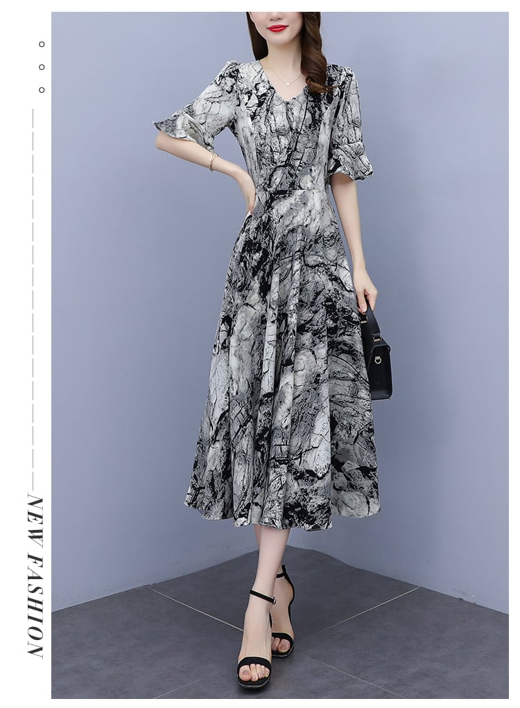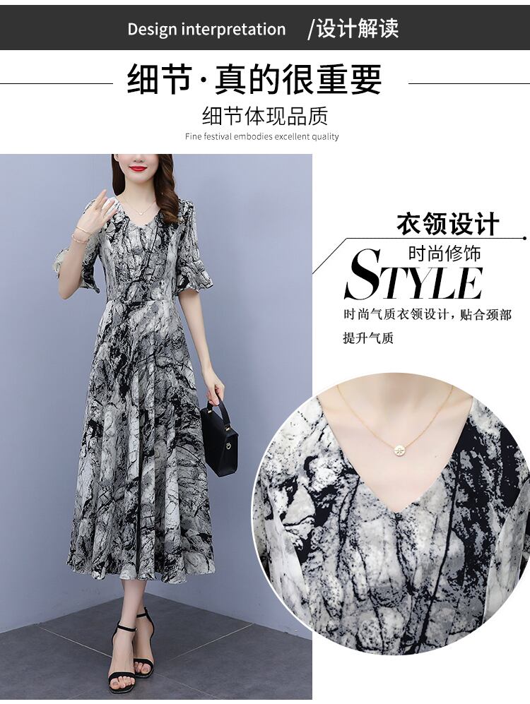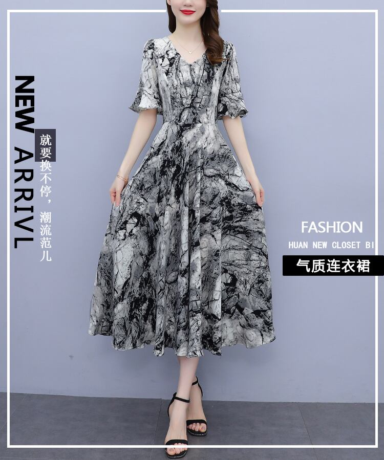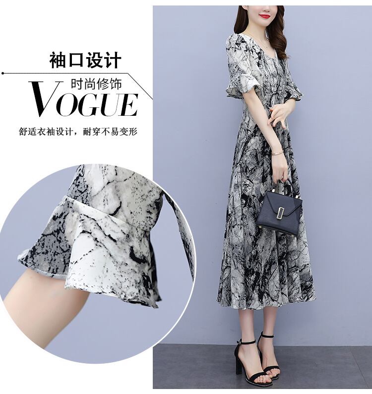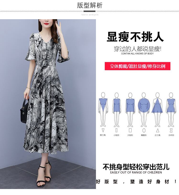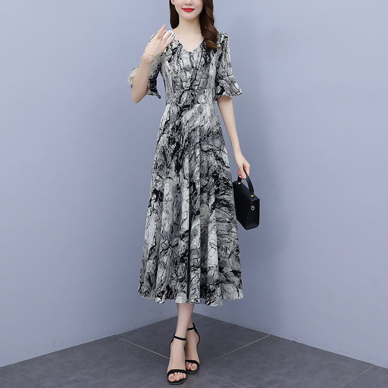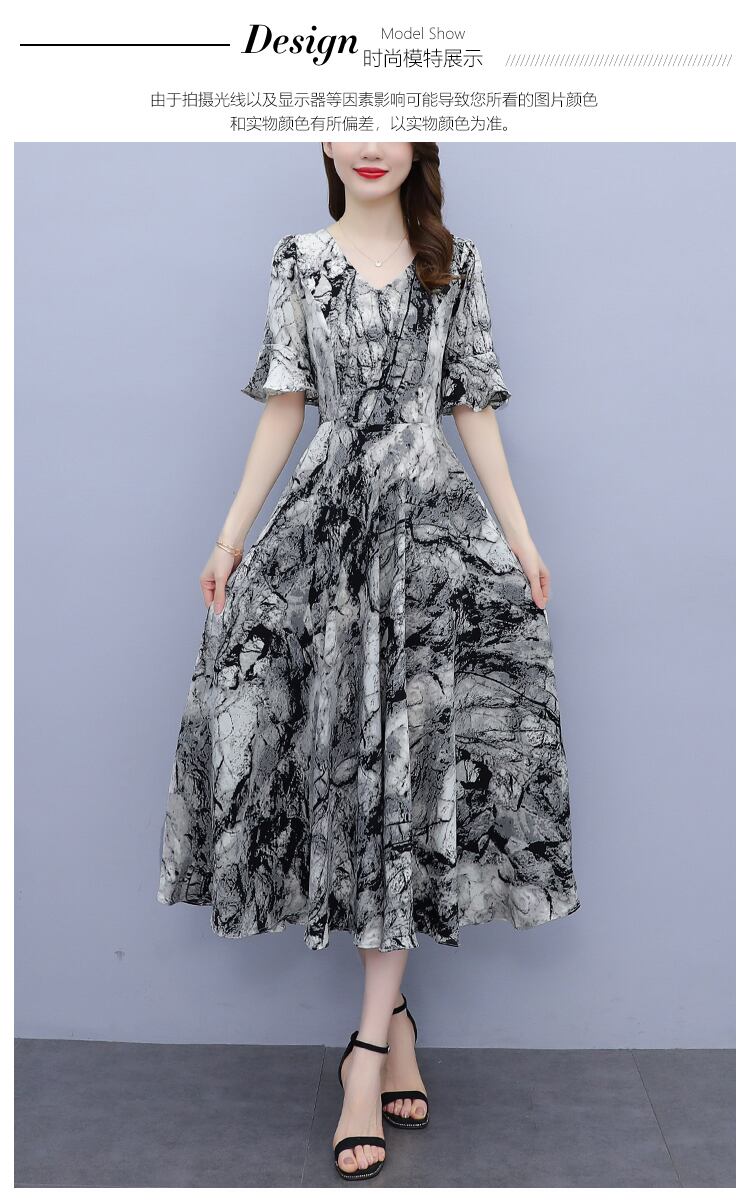 ドレス サマー薄手スリムフィットウェストVネックシフォンフローラルスカート ロング 大きめサイズ 夏物 花柄 muto48750217589