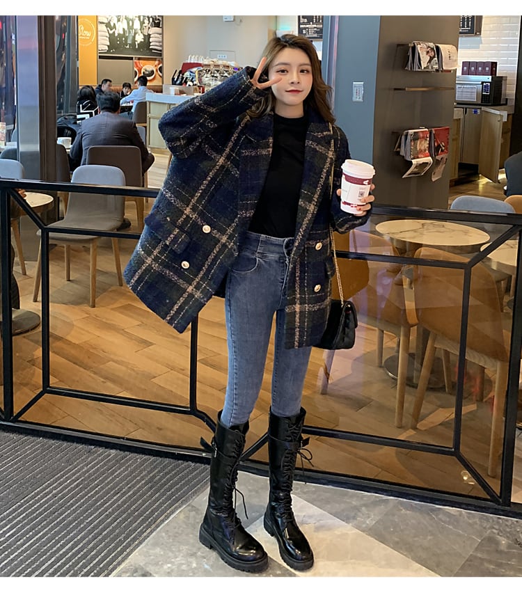 オータムウィンタースタイルコート ロング格子柄レディース 大きめサイズ 秋物 冬物 muto80887833251