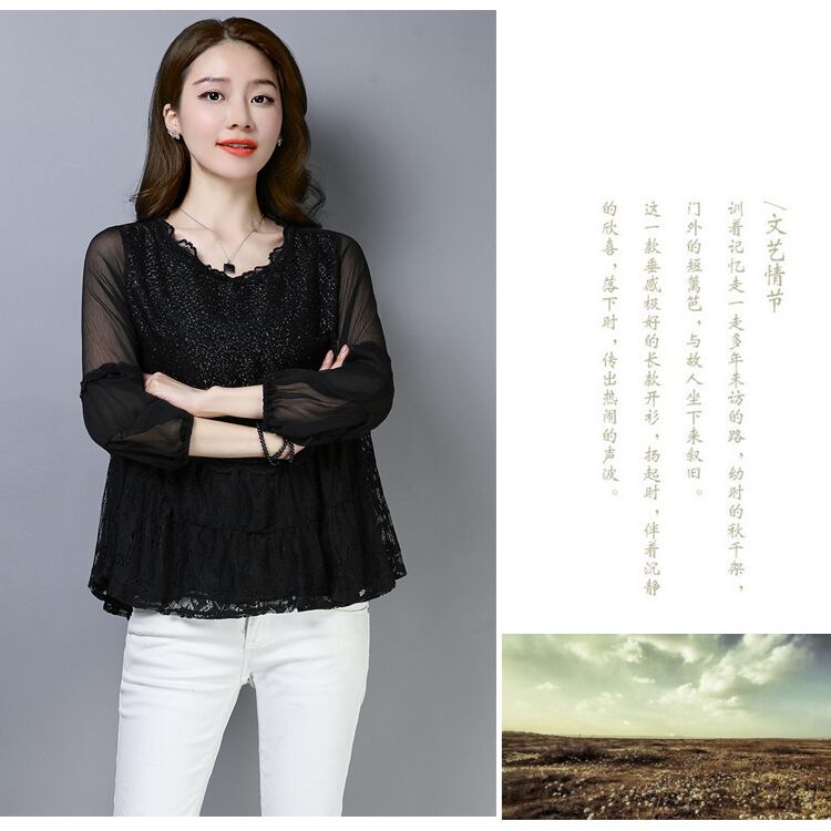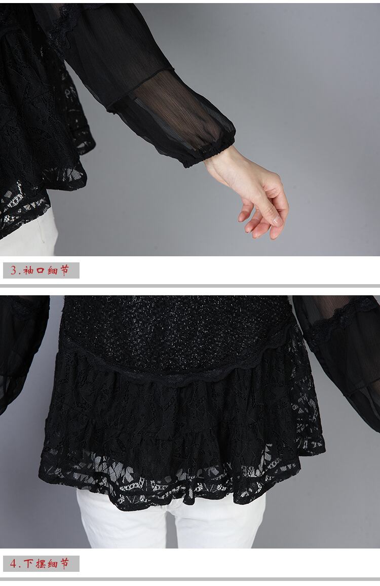 シフォンブラウス スプリングオータムレースシャツ ロング 春物 秋物 ステッチ muto16335654572