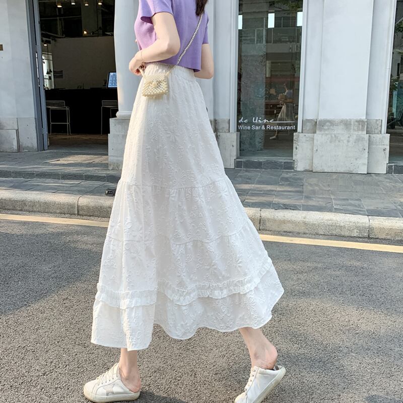 ジャカードスカート サマーハイウェストウェスト薄手 大きめサイズ 夏物 muto35660954727