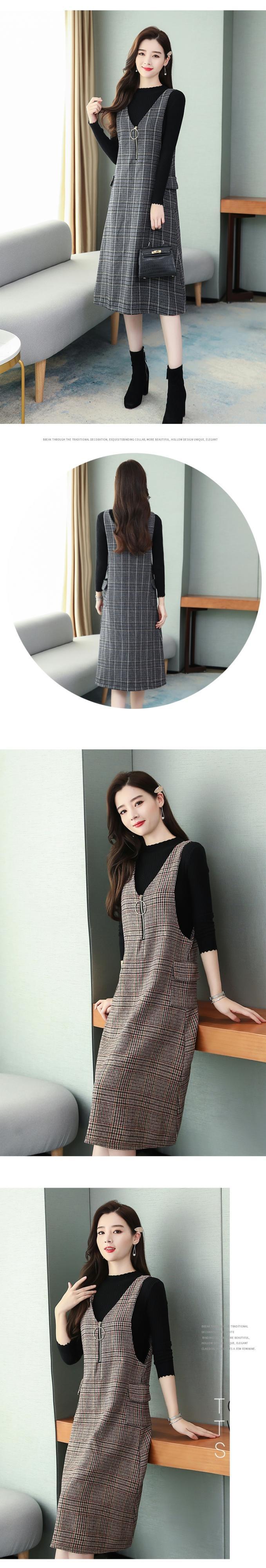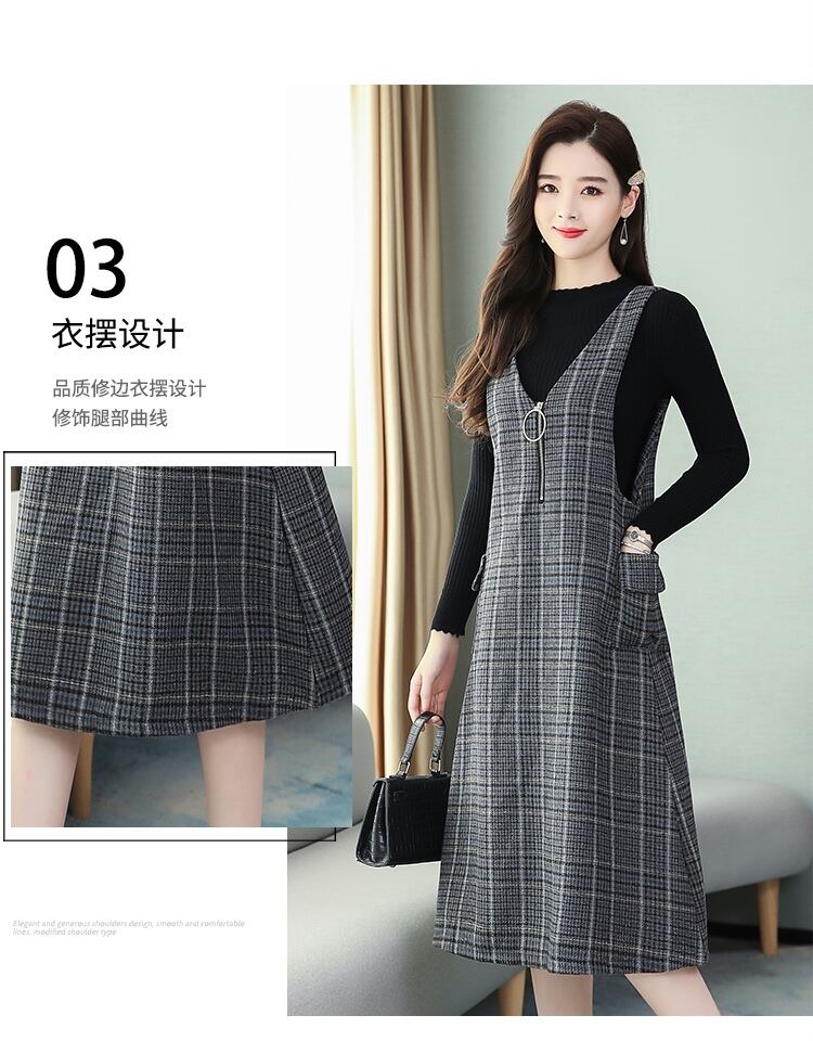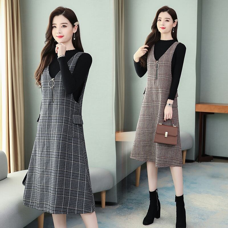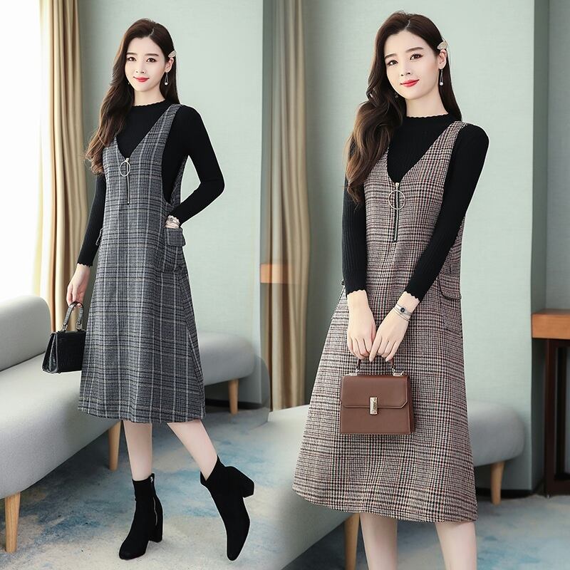 色:ブルーGridドレス+ブラックSweater,レッドチェックドレス+ブラックsweater