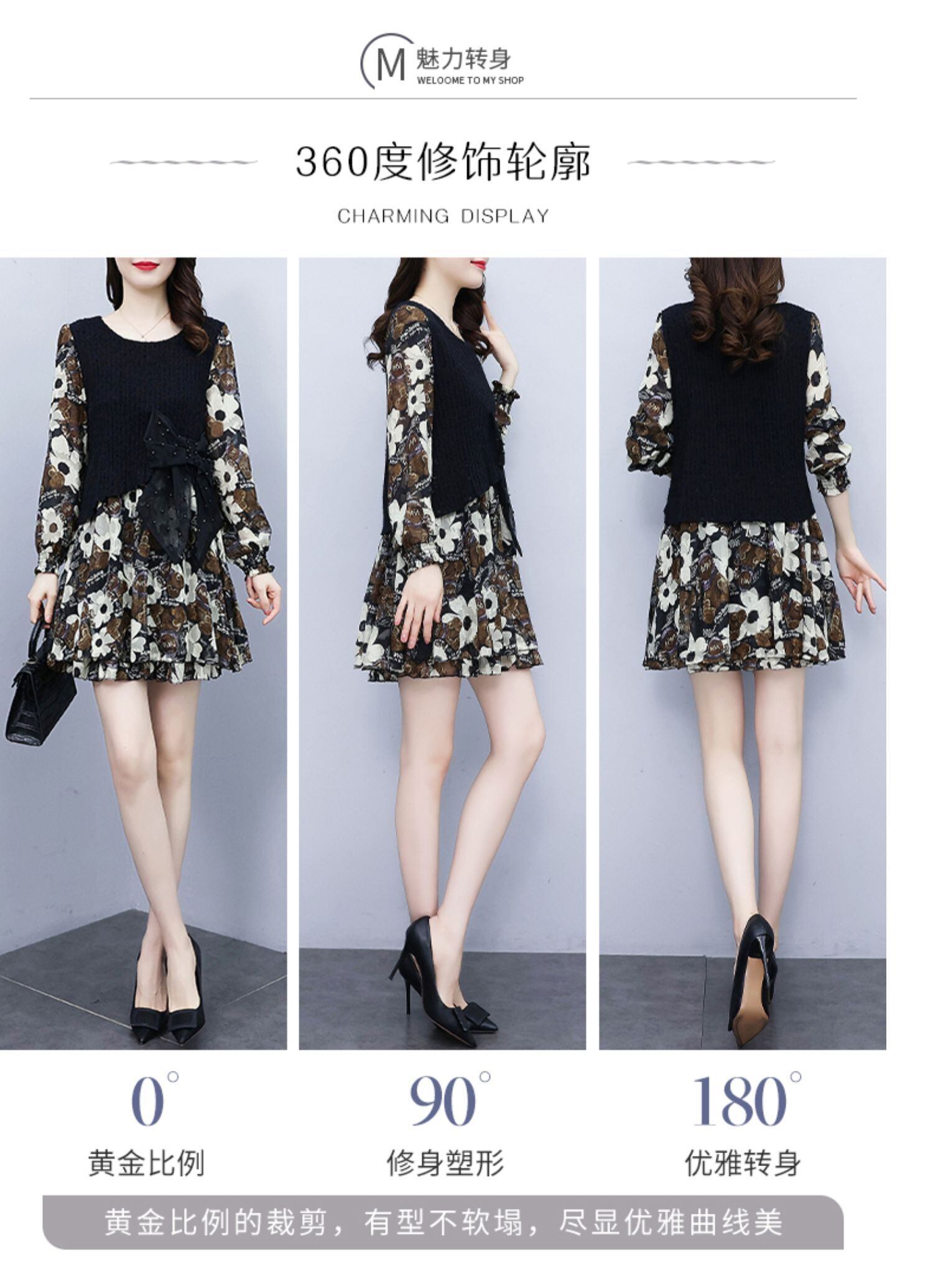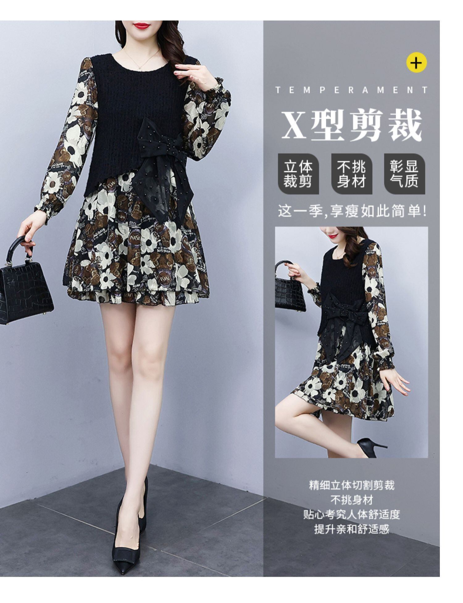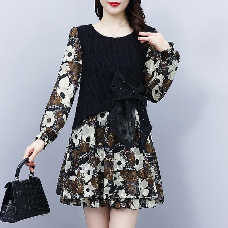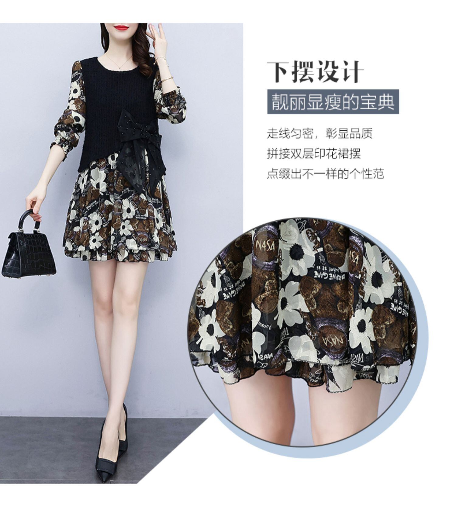 プリントドレス スプリング薄手スカート 大きめサイズ 春物 ステッチ muto12797473688