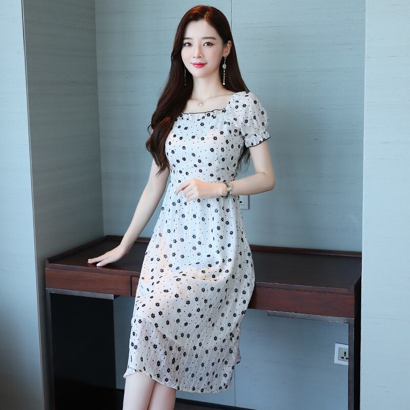 サマースカート ウェスト薄手スタンダードフローラルドレス レトロ 大きめサイズ 夏物 ビーチ 花柄 muto41153056552