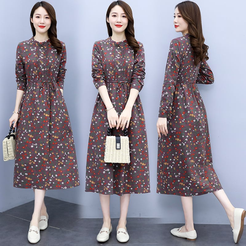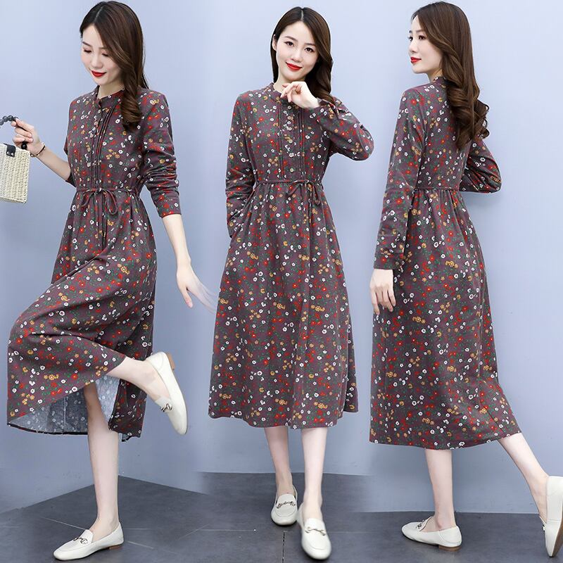 ドレス スプリングオータムスタイルフローラルスカート ロング コットン 大きめサイズ 春物 秋物 花柄 muto73594499886