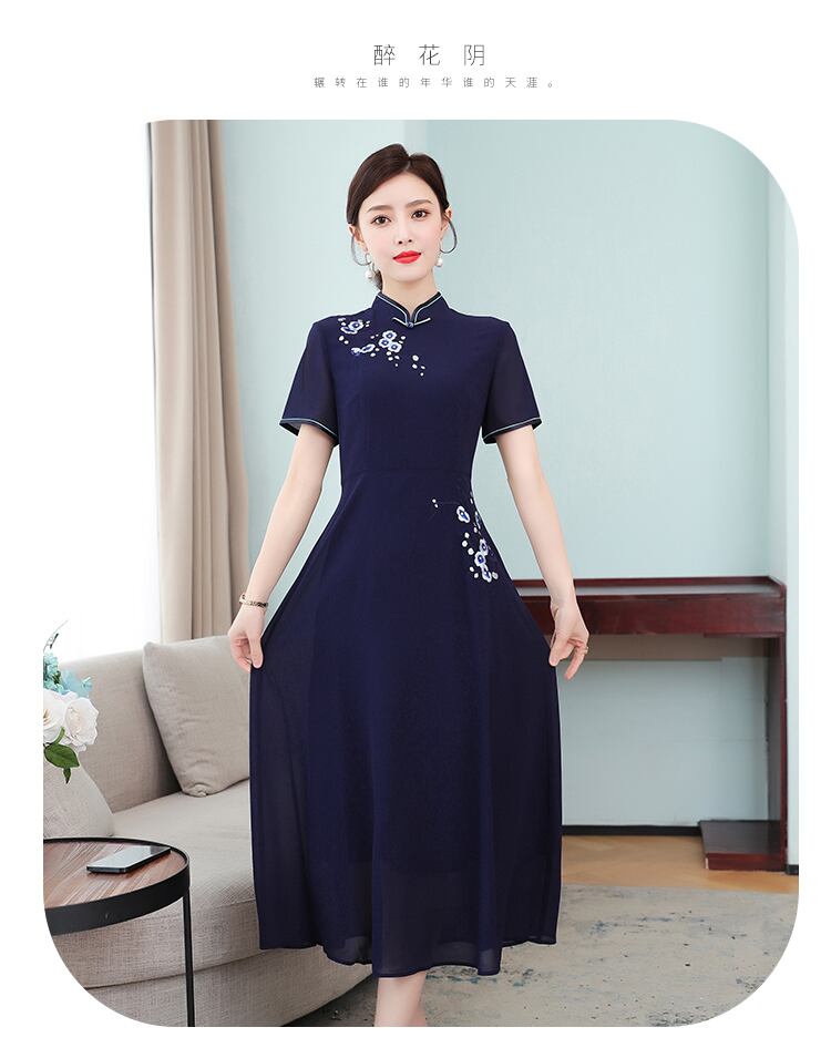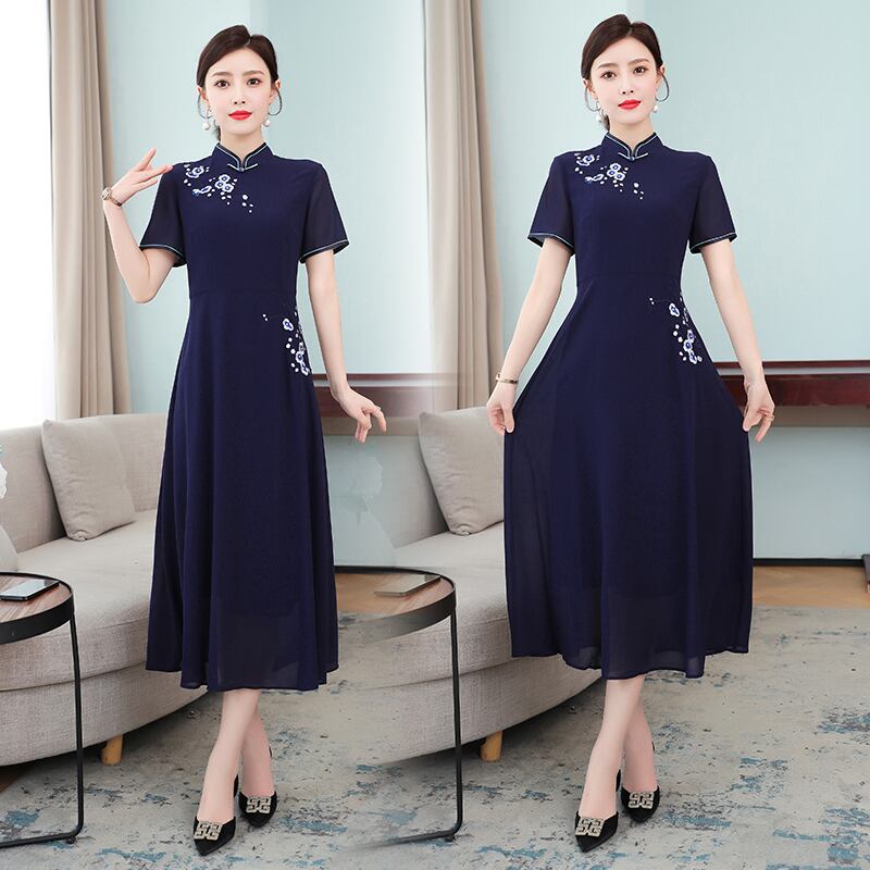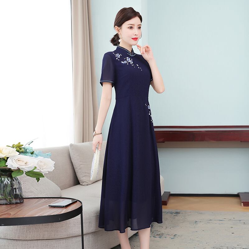 スタンダードスタイルサマードレス レッド レトロ 刺繍 大きめサイズ 夏物 muto15013697550