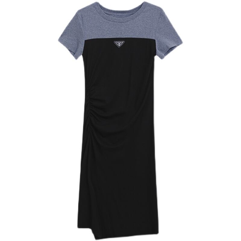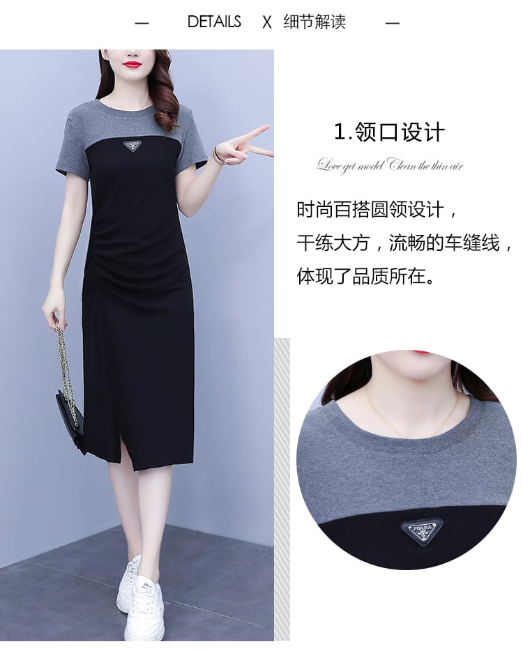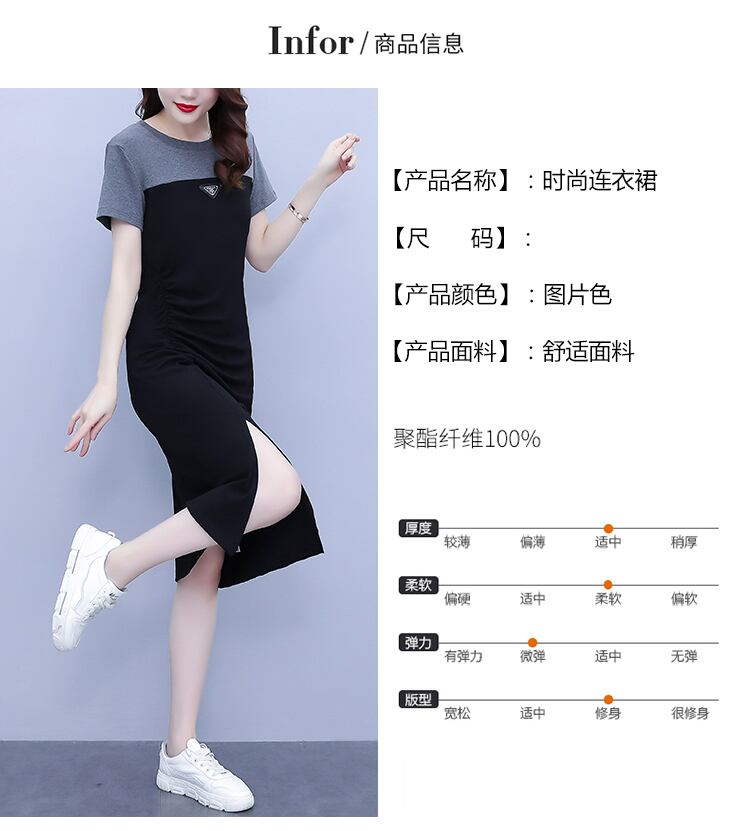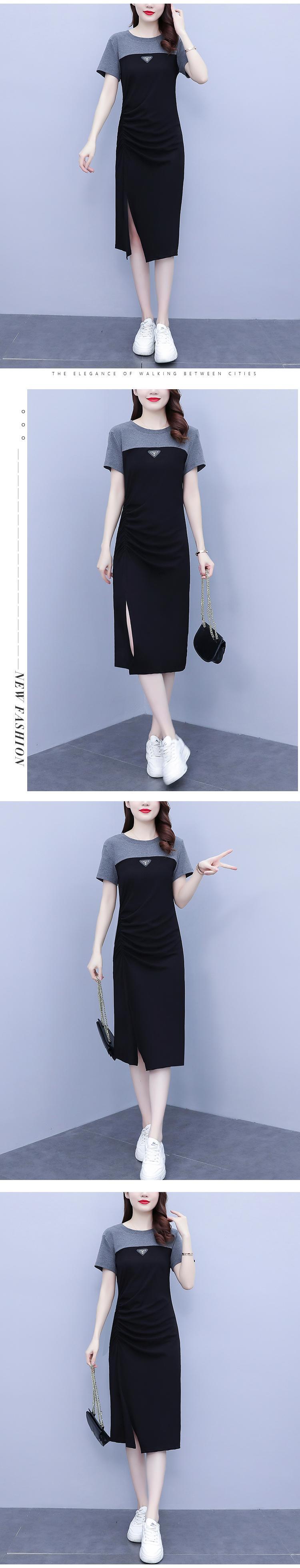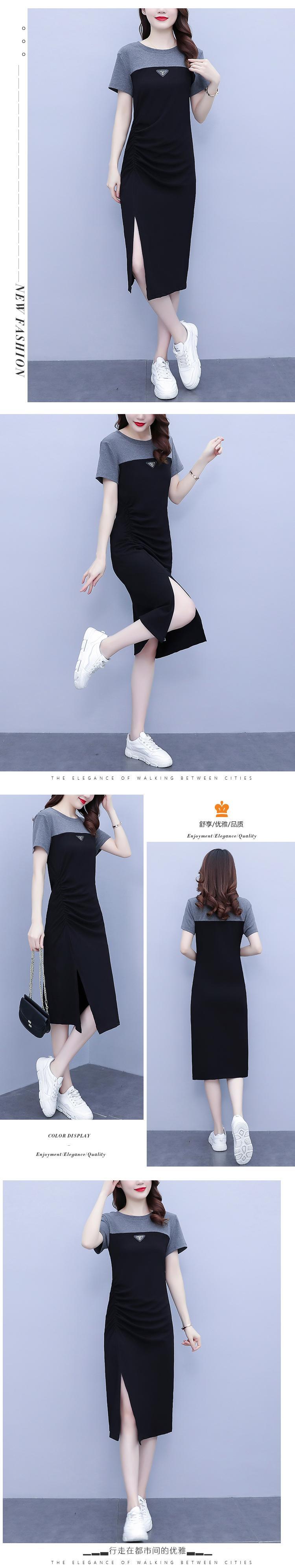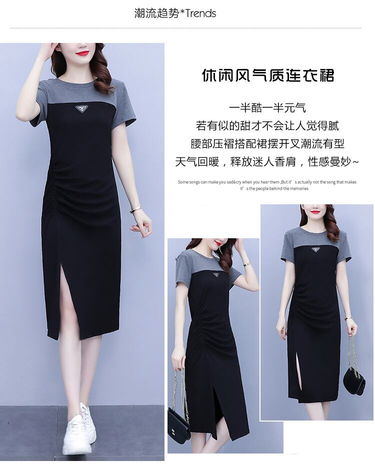 サマーロングドレス ウェスト薄手スリットスカート 大きめサイズ 夏物 ステッチ muto29987128653