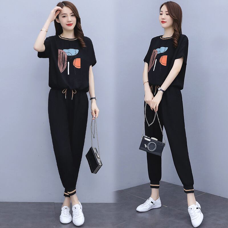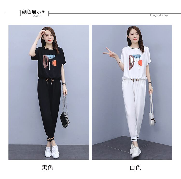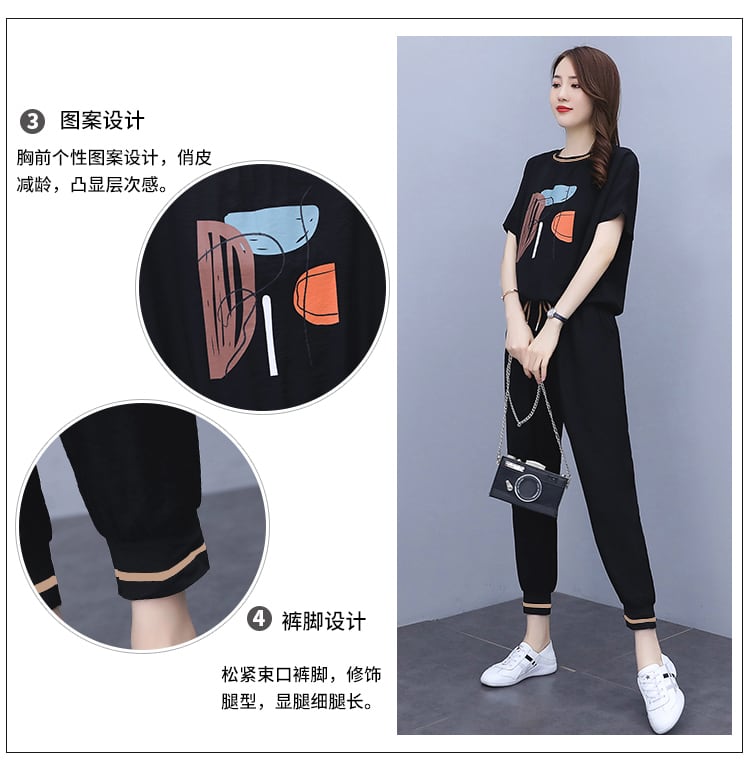 サマースタイルプリントセーター パンツ 大きめサイズ 夏物 muto35116449689