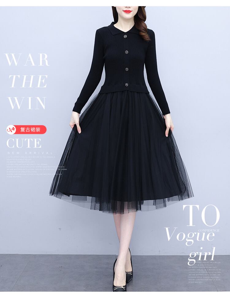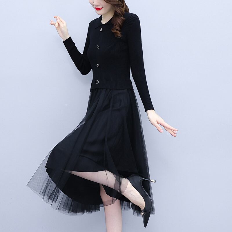 ニットドレス スプリングオータムメッシュセーター スカート 大きめサイズ 春物 秋物 muto10011433735