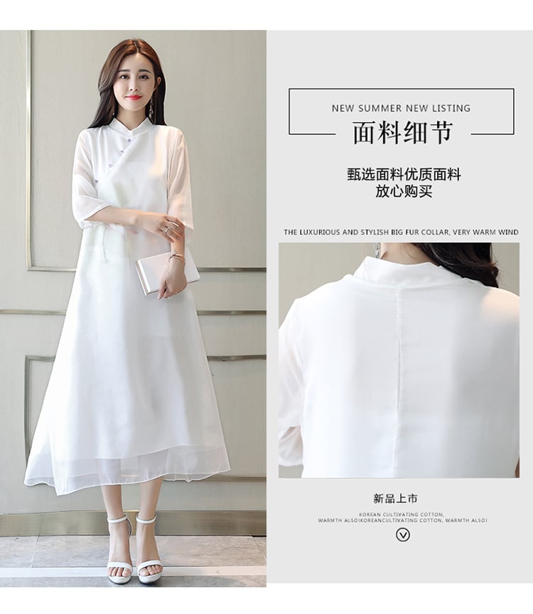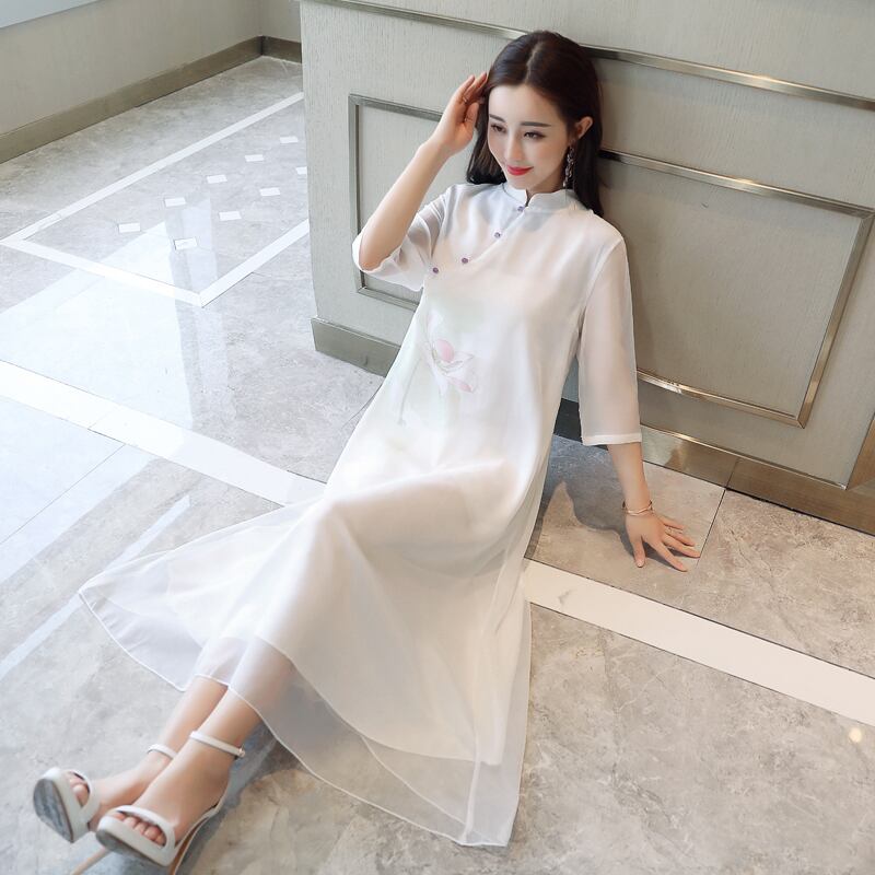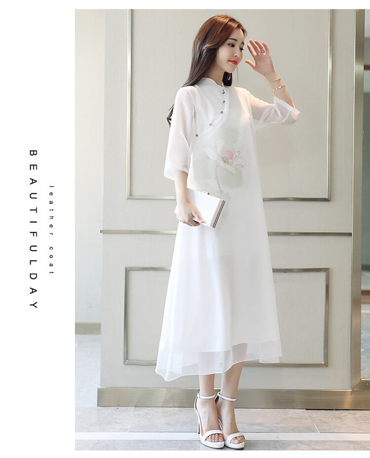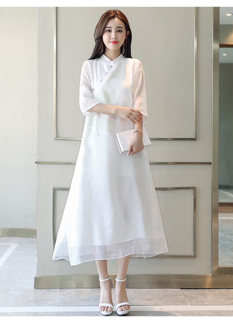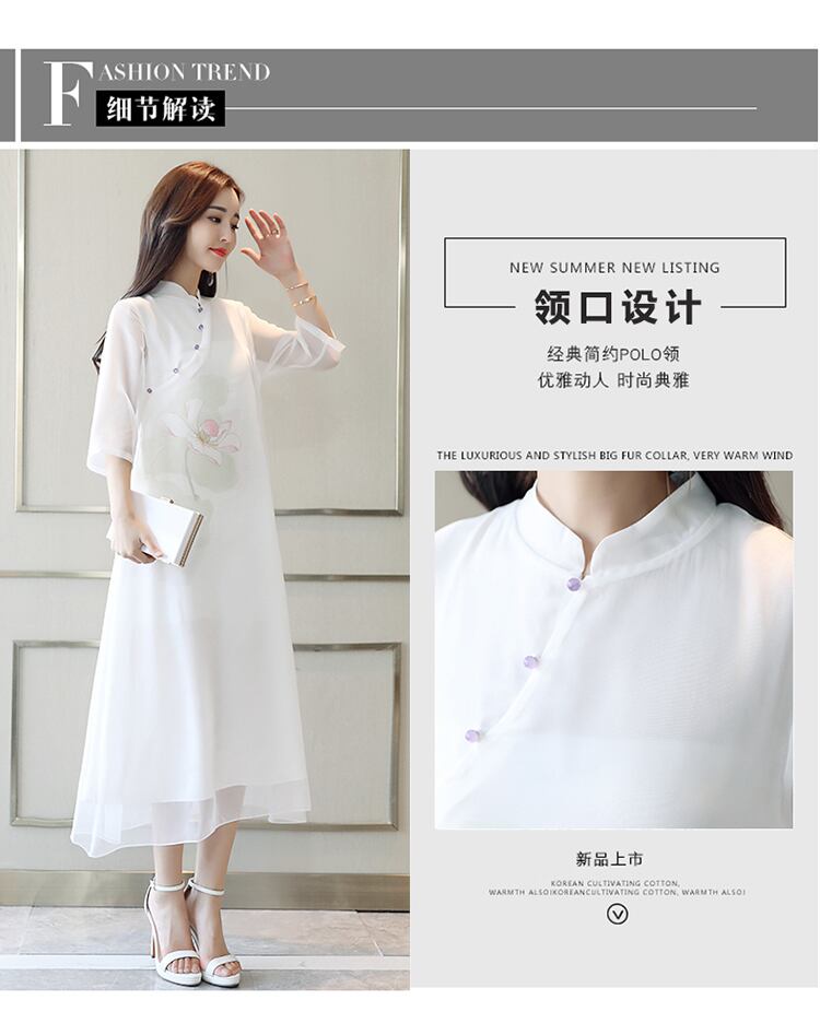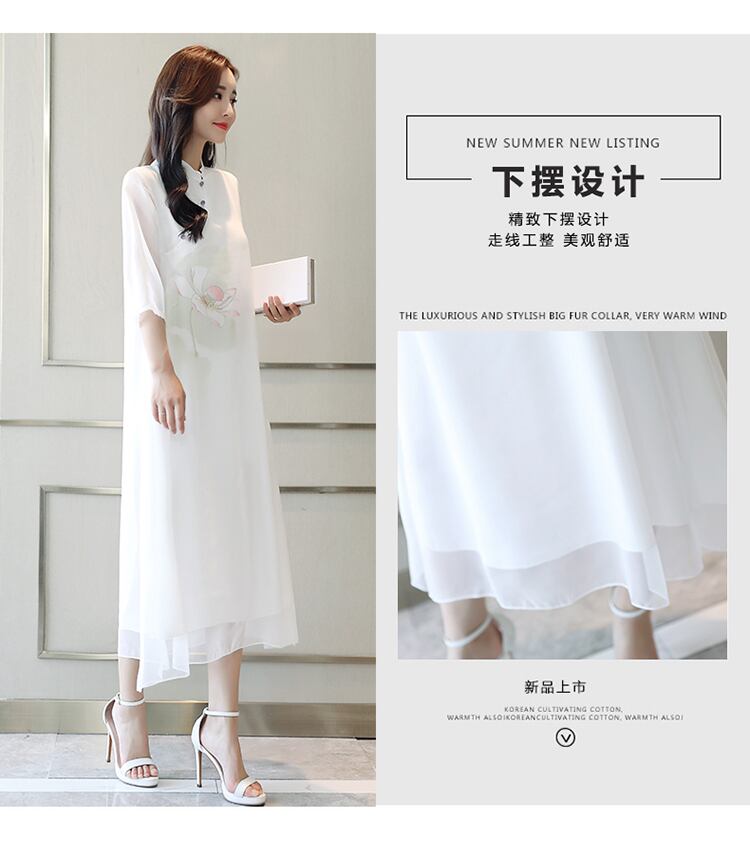 サマースタイルドレス ウェストホワイトロングスカート 大きめサイズ 夏物 muto90781295442