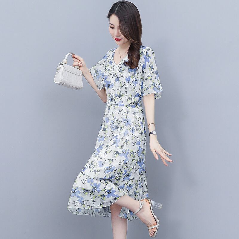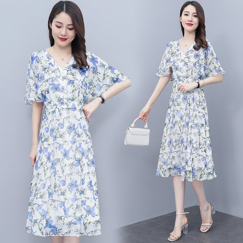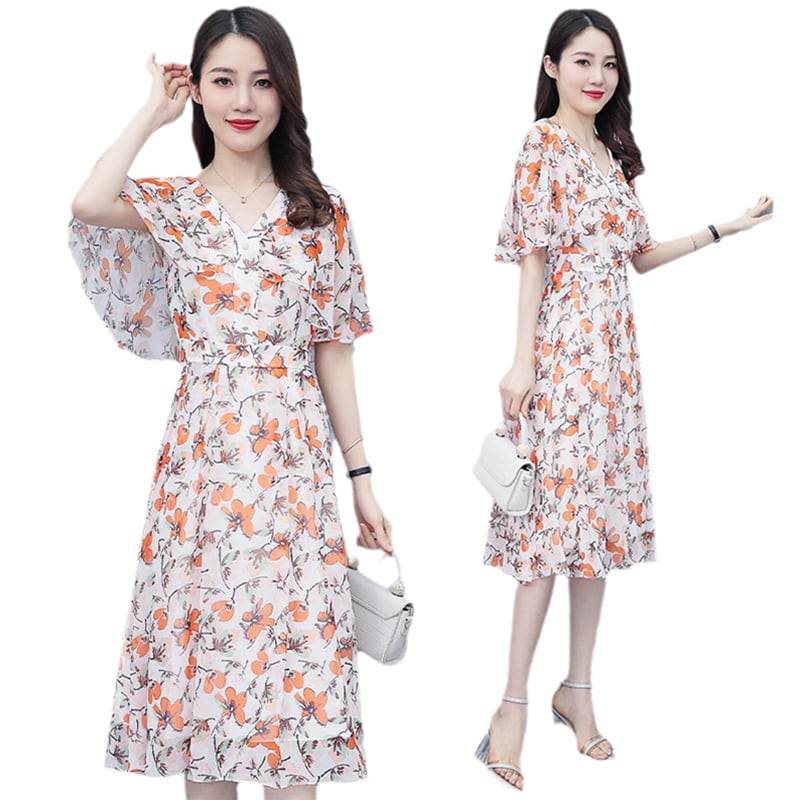 シフォンフローラルドレス サマーウェストロングスカート 大きめサイズ 夏物 花柄 muto14000503974