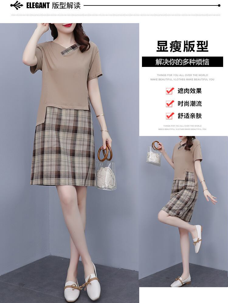 格子柄ドレス サマー薄手スカート 大きめサイズ 夏物 ステッチ muto63491109117