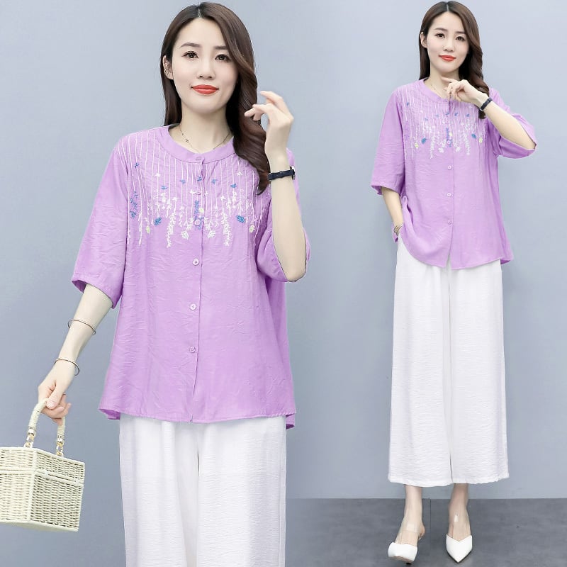ルーズ刺繍パンツ サマー コットン 大きめサイズ 夏物 muto27144747816