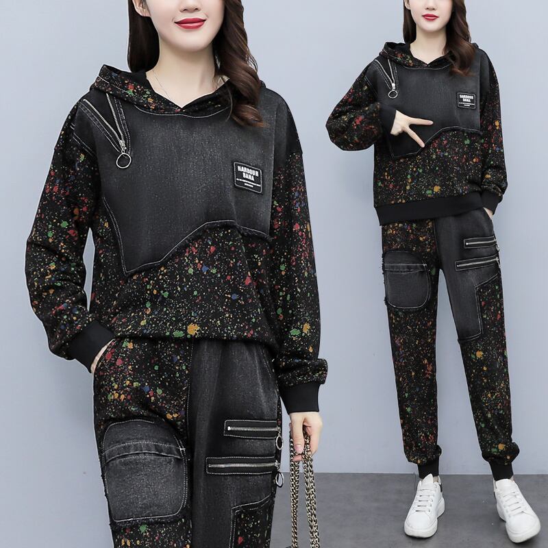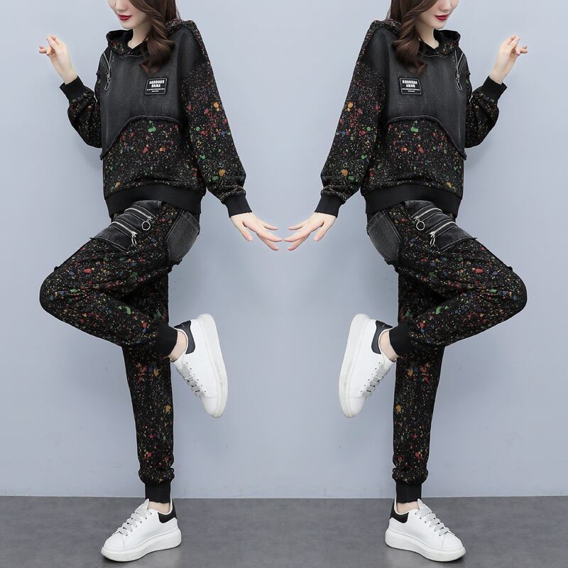スプリングオータム迷彩柄ルーズパンツ スタイルセーター セット 大きめサイズ 春物 秋物 muto14726745807