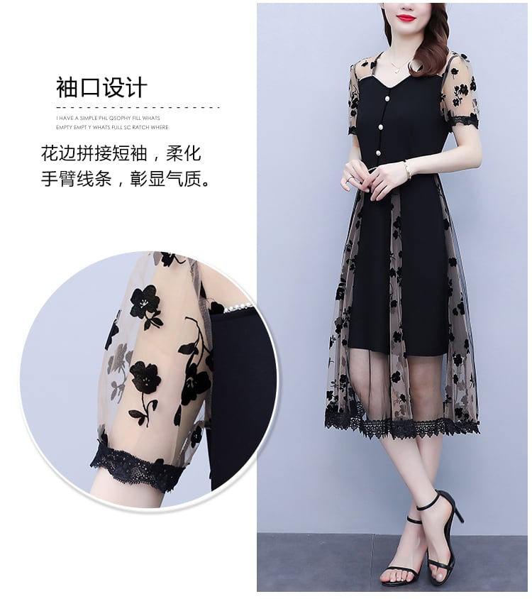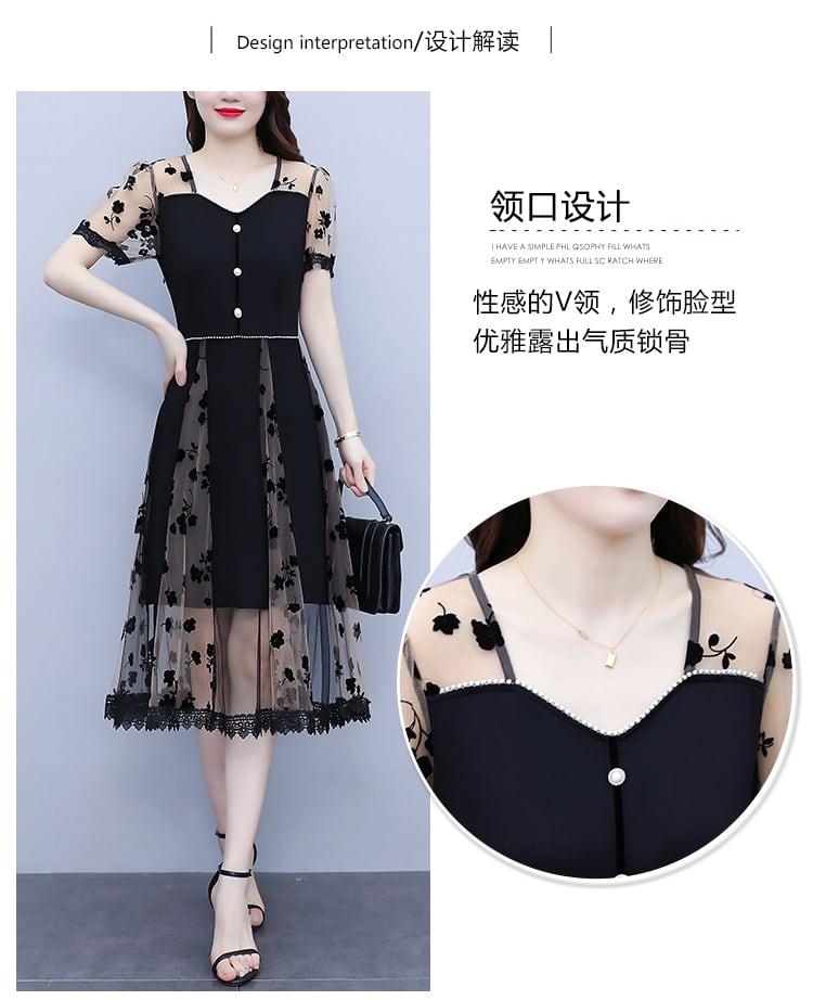 レースシフォンドレス サマースリムメッシュスカート 大きめサイズ 夏物 ステッチ muto67895658758