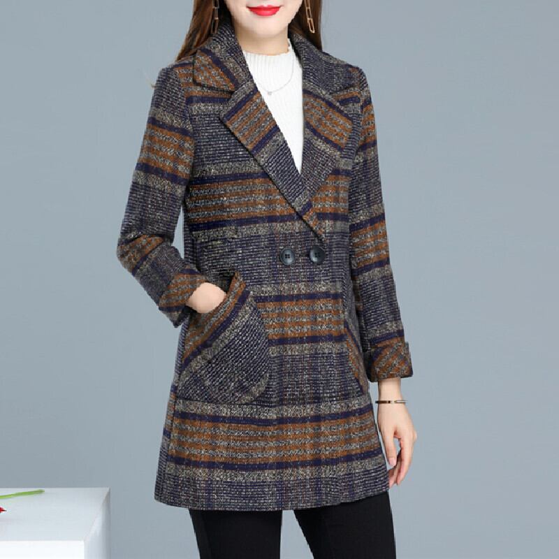 オータムウィンターカラーコート ロング薄手格子柄トップス コットン 大きめサイズ 秋物 冬物 muto96745469675