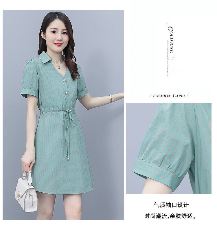 ストライプシャツ スカート サマーVネックウェストドレス レディース 大きめサイズ 夏物 muto184588604