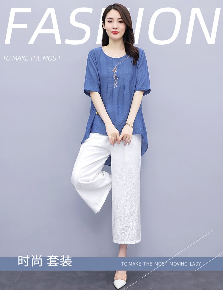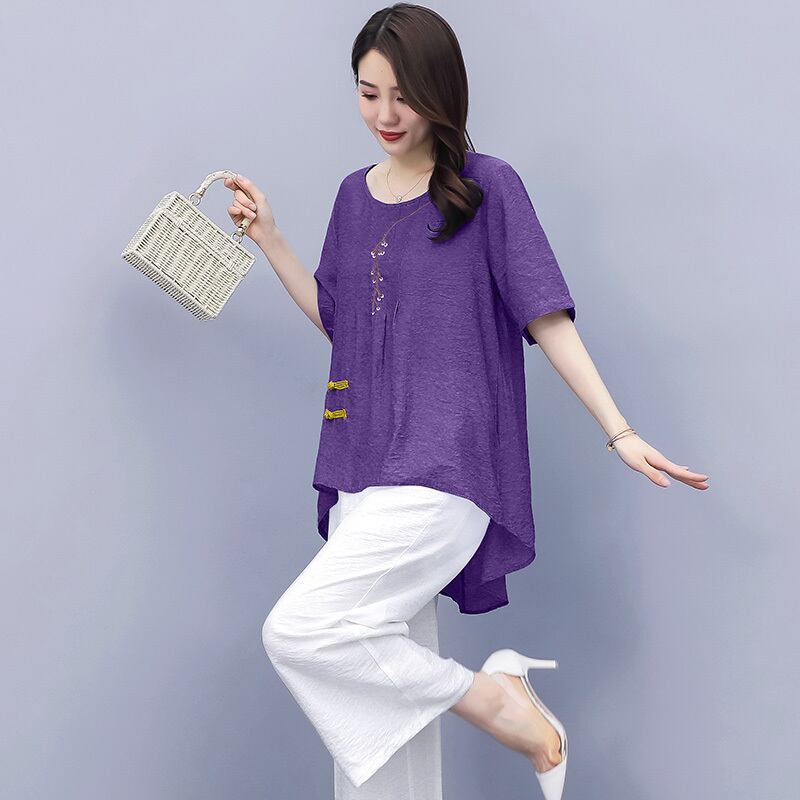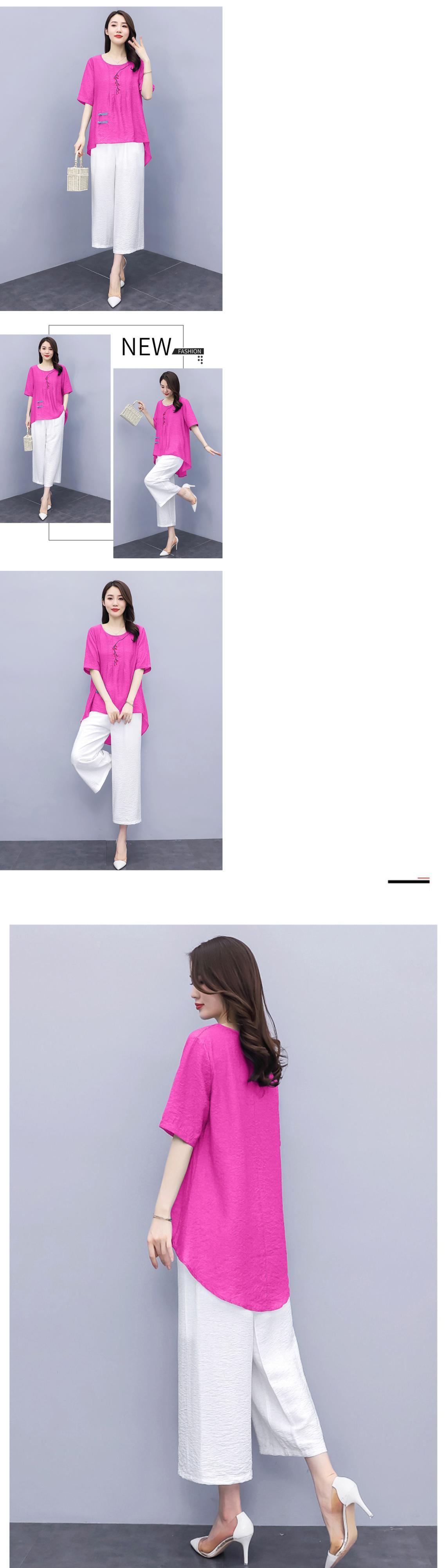 サマースタンダードエスニックスタイルルーズ薄手パンツ セット レッド コットン レトロ 刺繍 大きめサイズ 夏物 muto50314445734