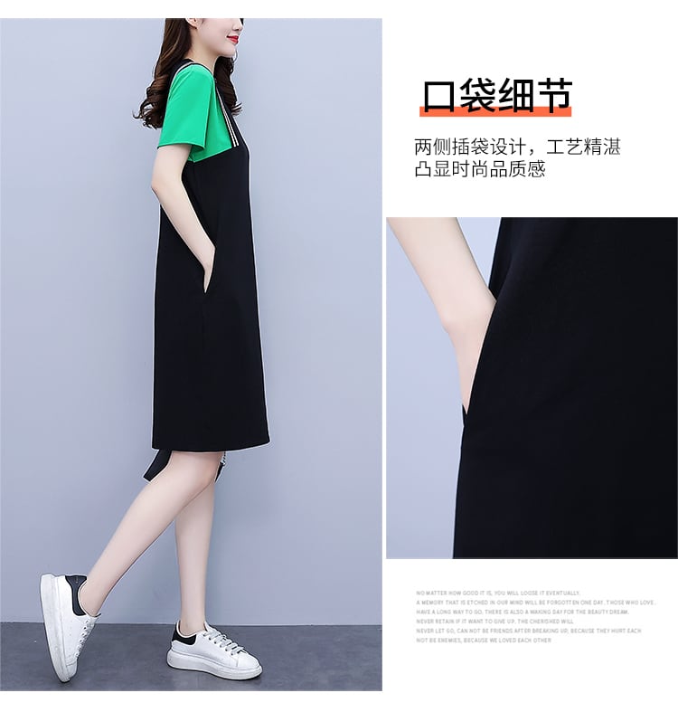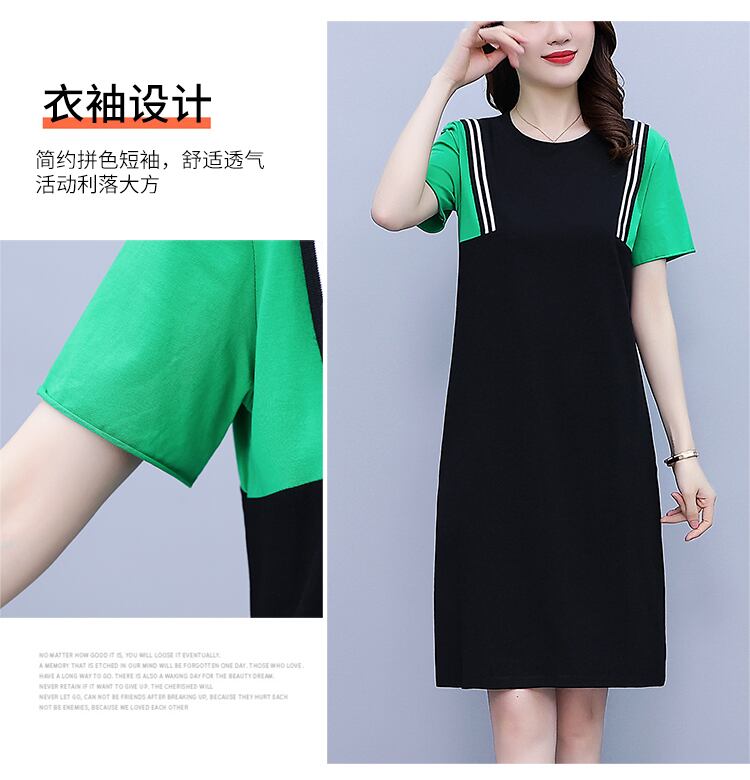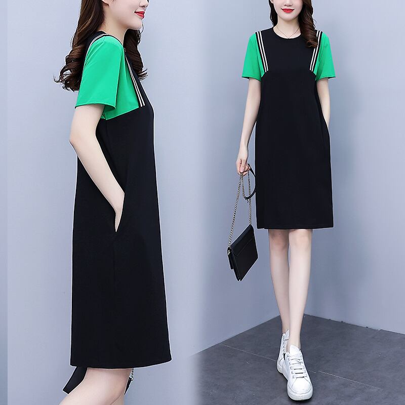 スタイルカラールーズスカート サマー薄手ラウンドネックドレス 大きめサイズ 夏物 Oネック muto80276814375