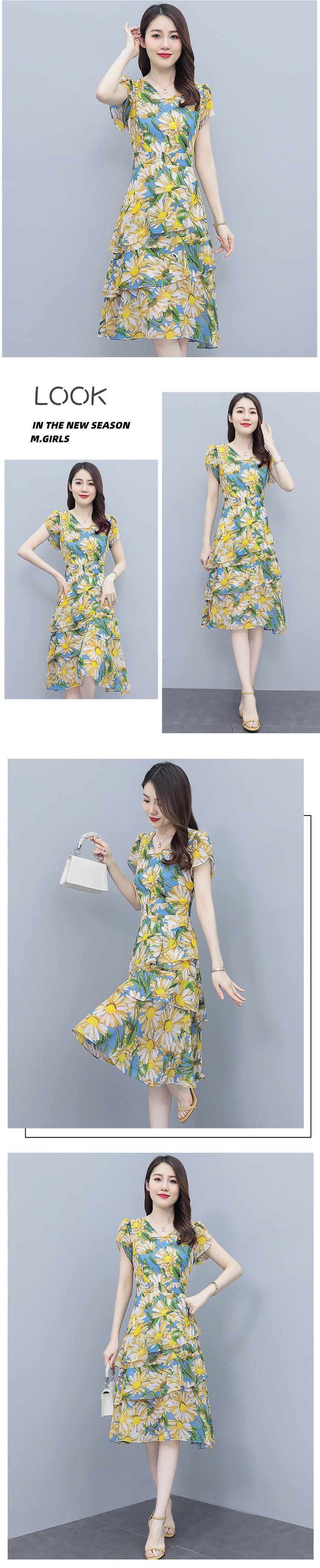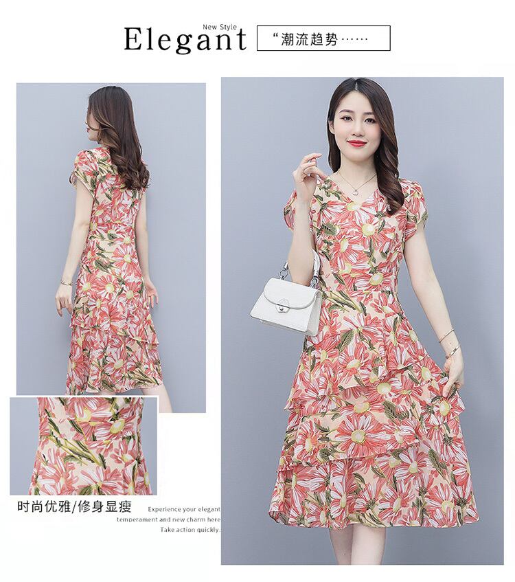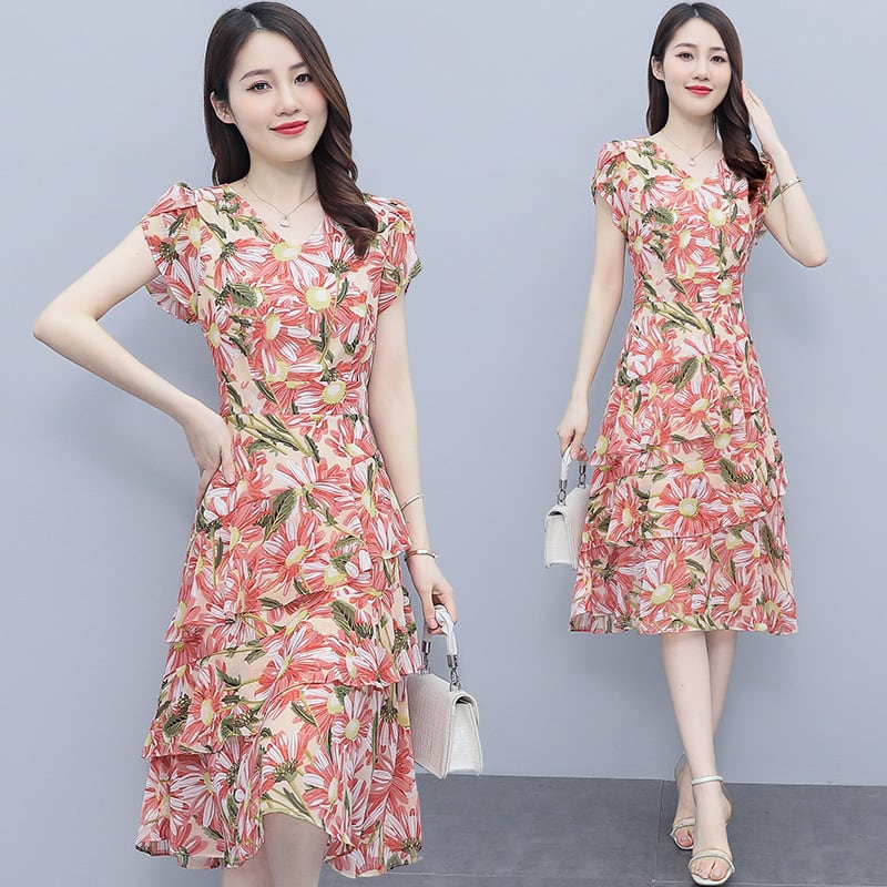 サマーフローラルシフォンドレス 薄手スカート 大きめサイズ 夏物 花柄 muto69545467140