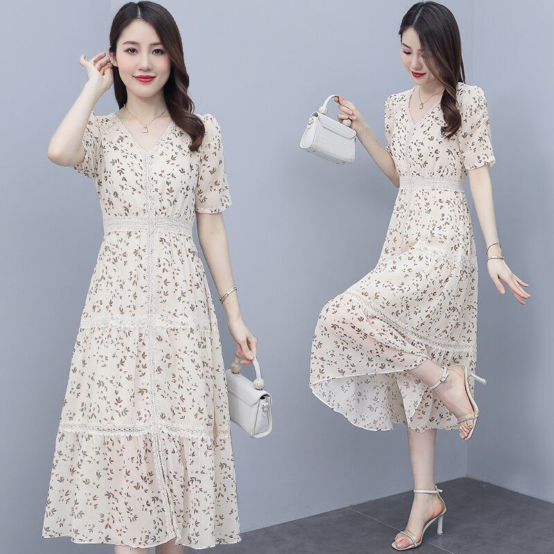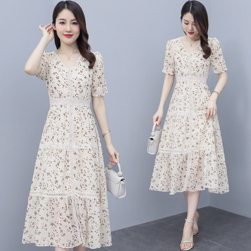 フローラルシフォンドレス サマーロングスカート 薄手スリムウェスト 大きめサイズ 夏物 花柄 muto28956374609