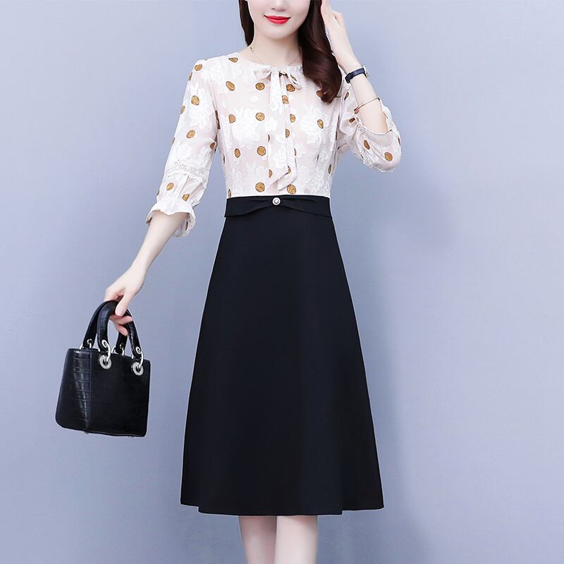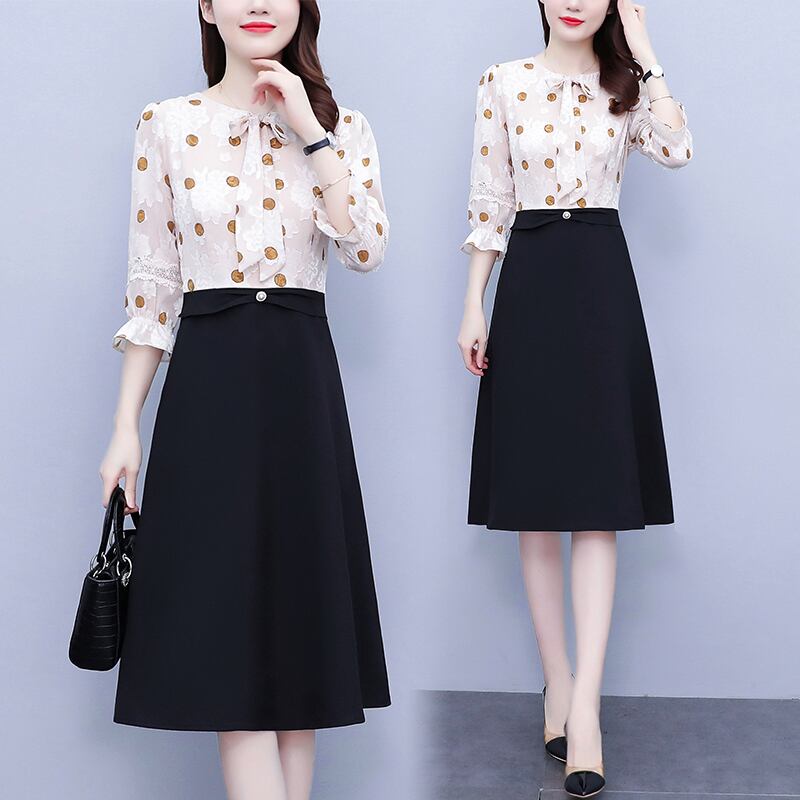 シフォンジャカードドレス サマースリムロングスカート 大きめサイズ 夏物 ステッチ muto98624090850