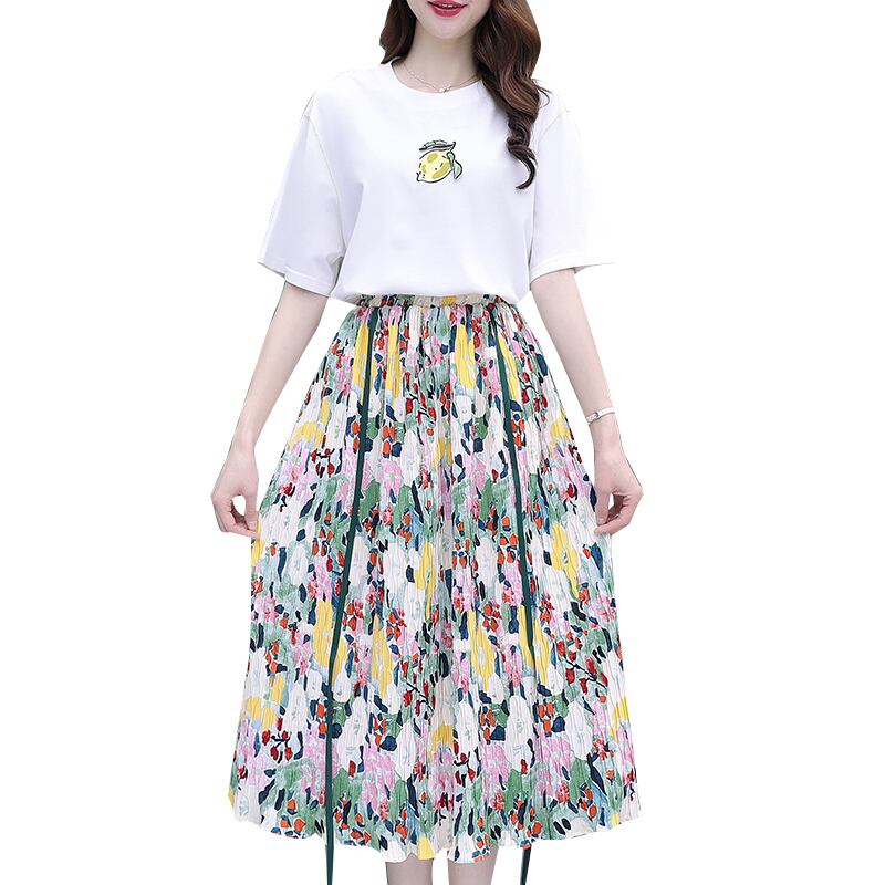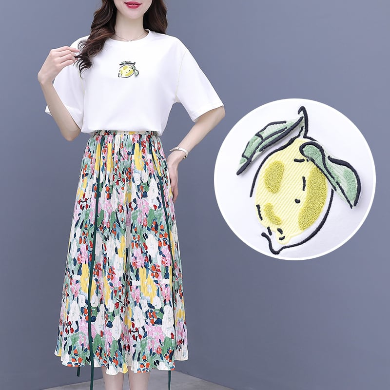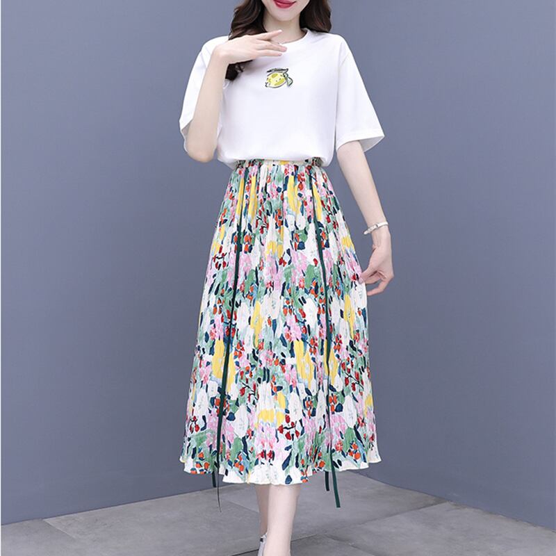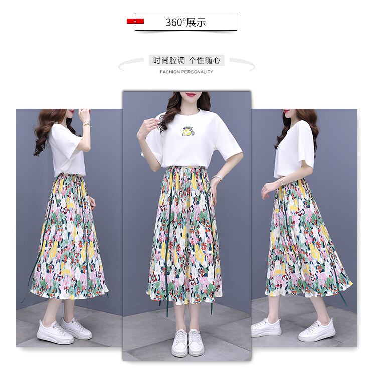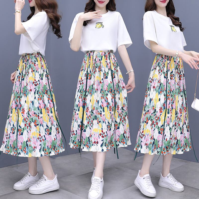 カジュアルスカート サマーTシャツ ハイウェストウェストスリムセット 大きめサイズ 夏物 muto24724817178