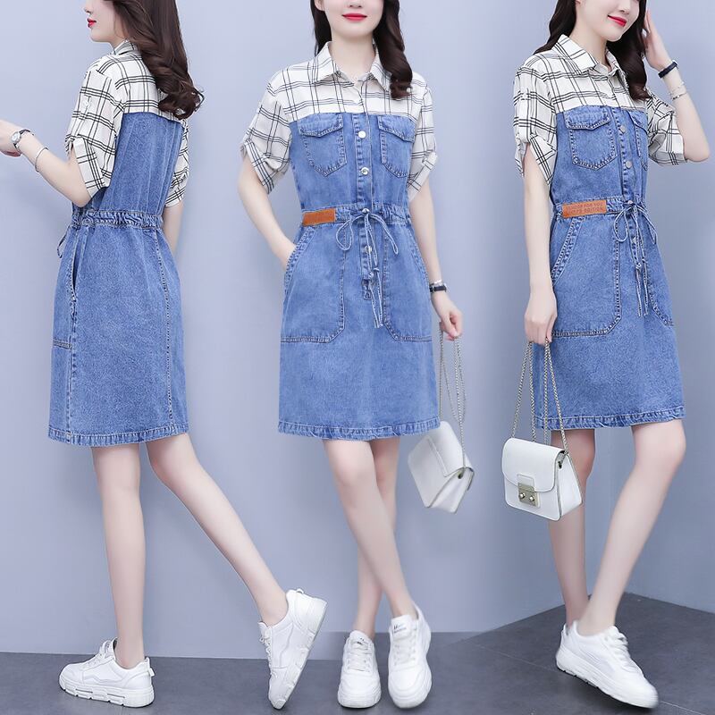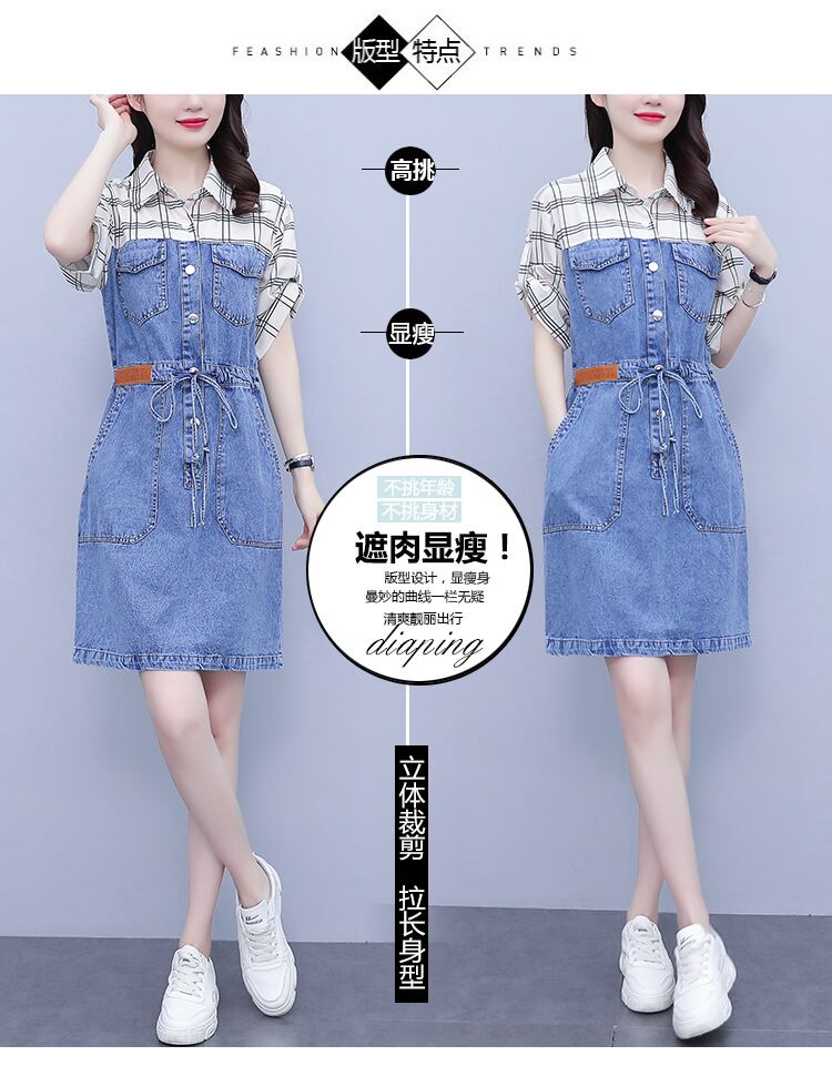 格子柄ドレス サマーウェストスリムスカート 大きめサイズ 夏物 muto71646525776