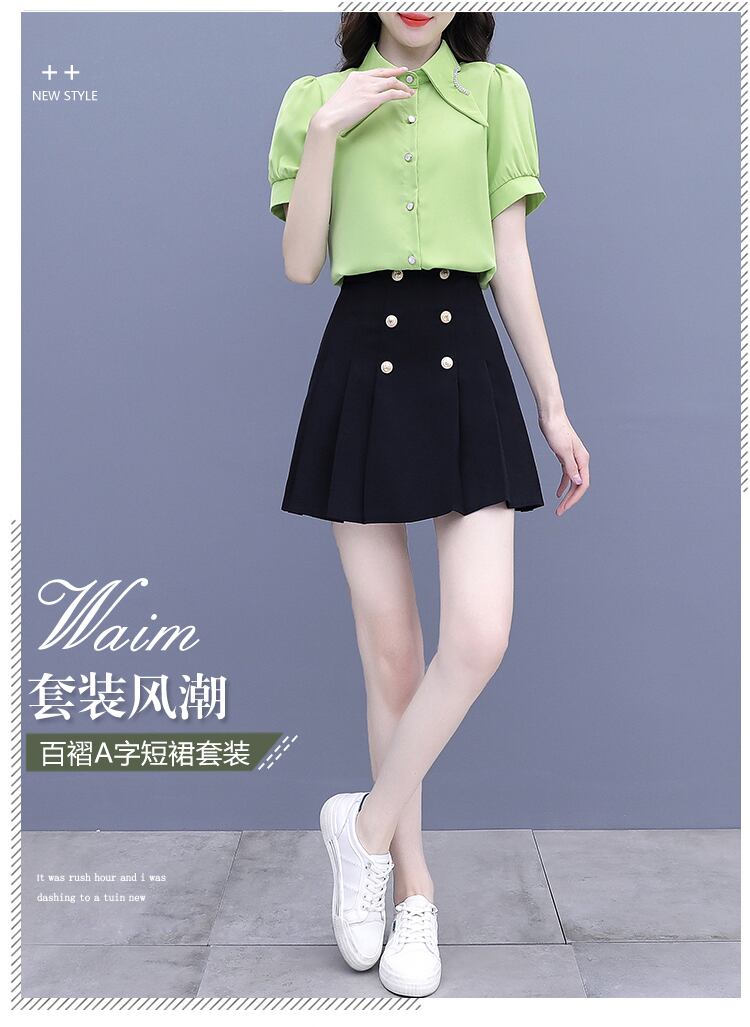 レッドサマーシフォンシャツ プリーツスカート 大きめサイズ 夏物 muto4668226221