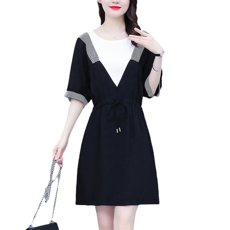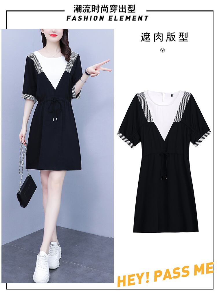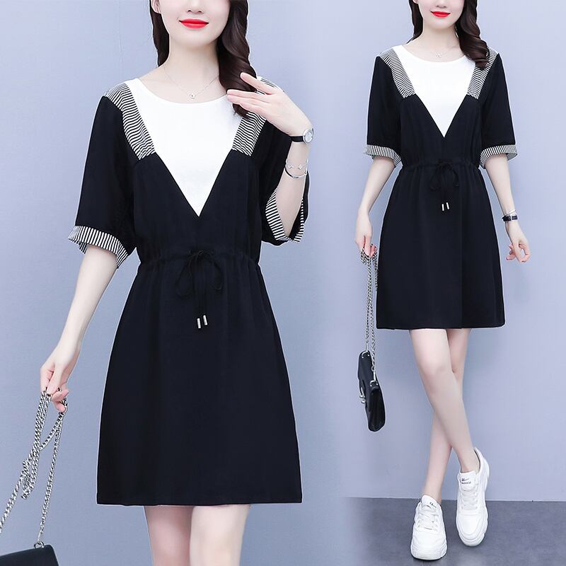 ウェスト薄手Aラインスカート サマードレス レディース レース 大きめサイズ 夏物 レースアップ ステッチ muto70005969550