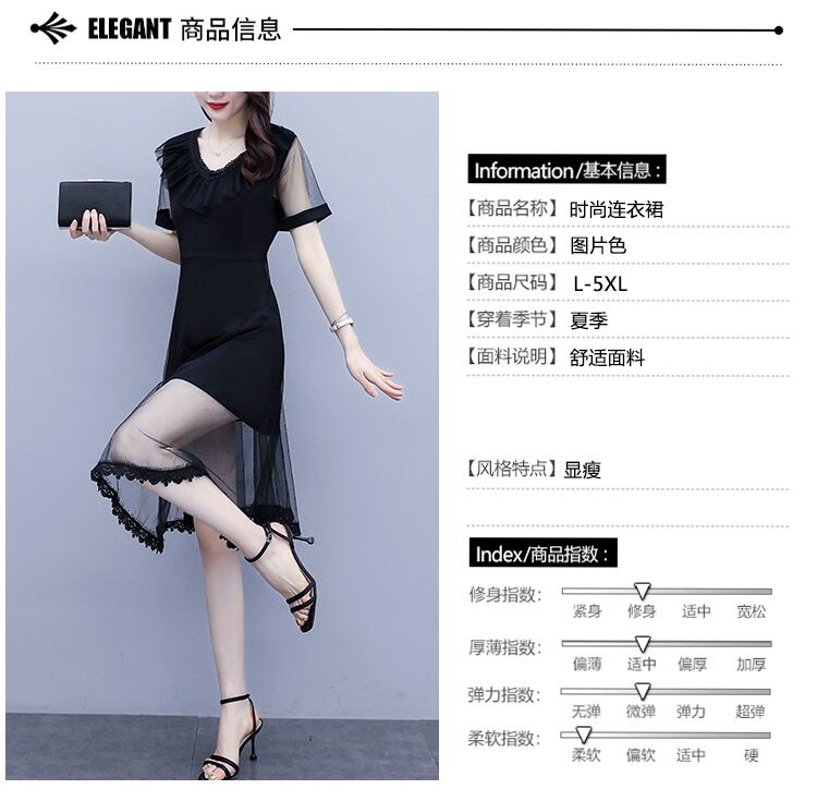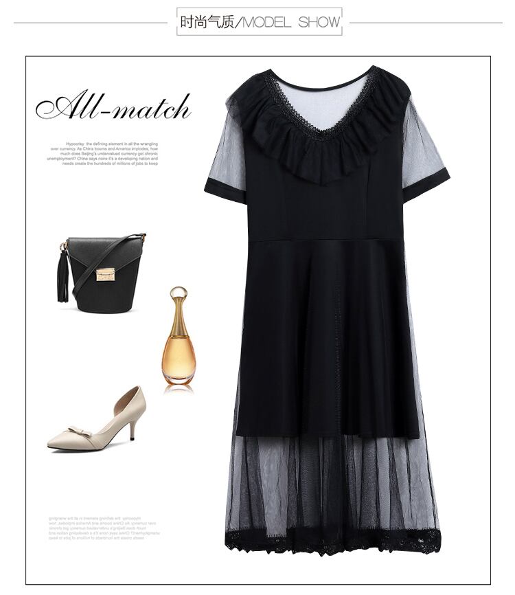 薄手サマーメッシュスタイルスリムドレス 大きめサイズ 夏物 ステッチ muto53964250295