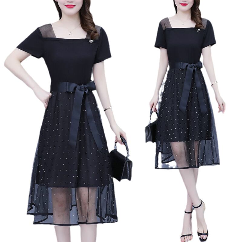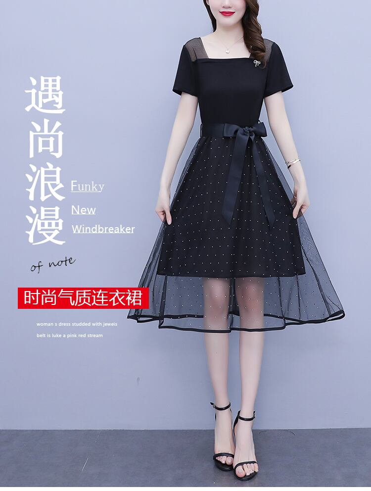 メッシュドレス サマースカート 大きめサイズ 夏物 スクウェア ステッチ muto70191051132