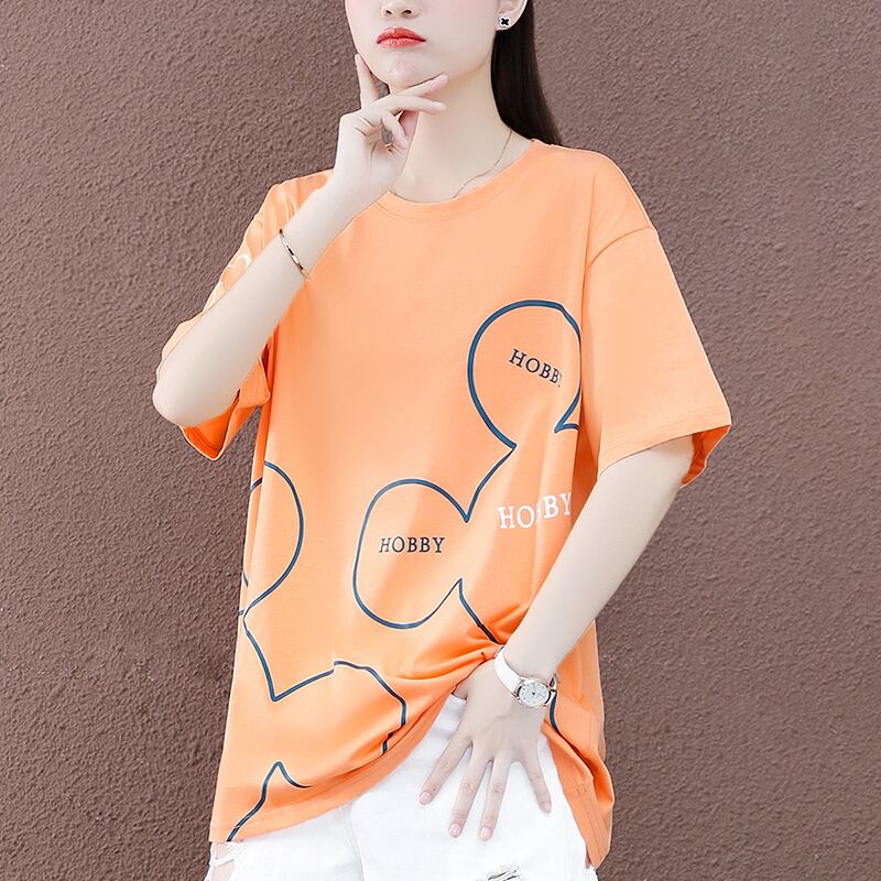 ルーズTシャツ サマードレス カジュアルプリントトップス 大きめサイズ 夏物 muto74122248453