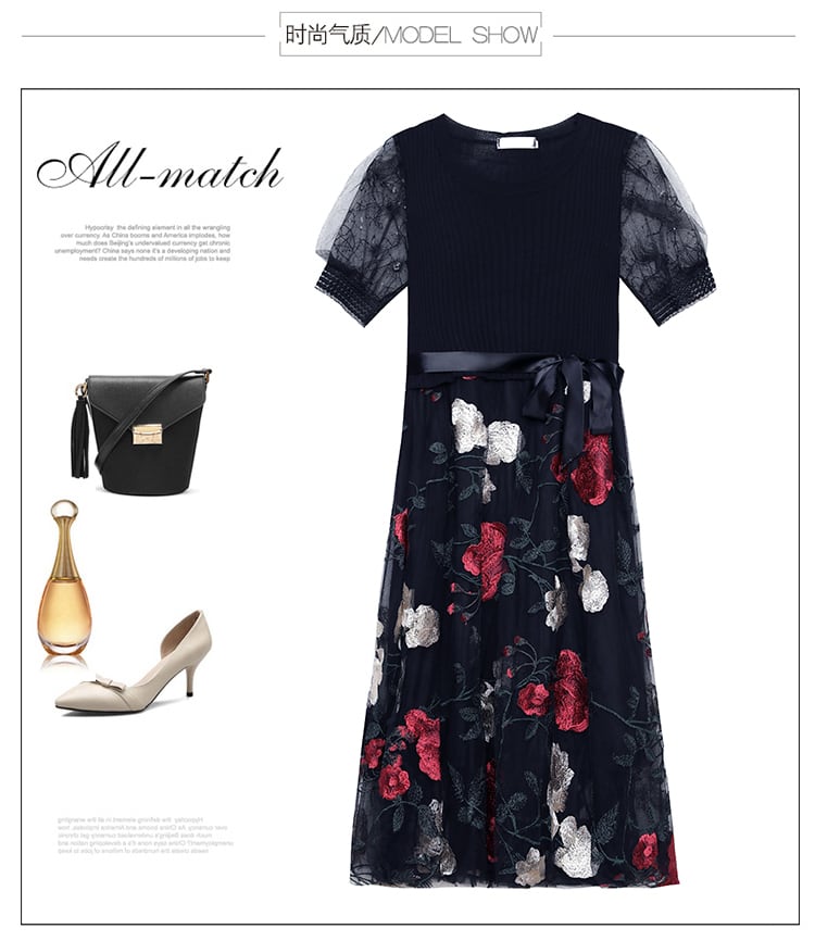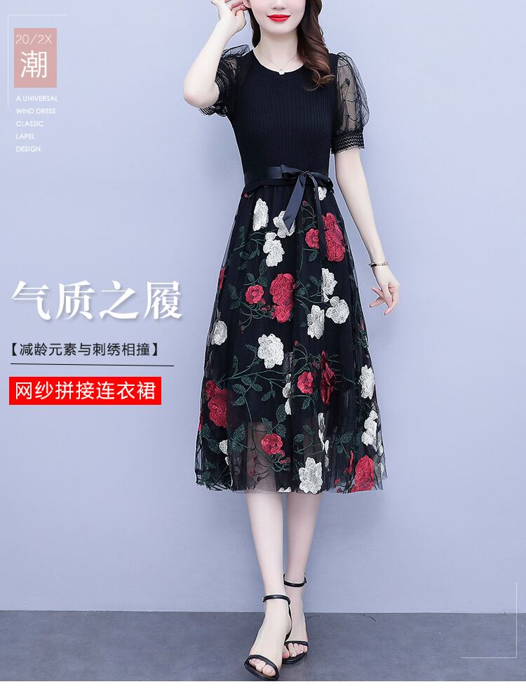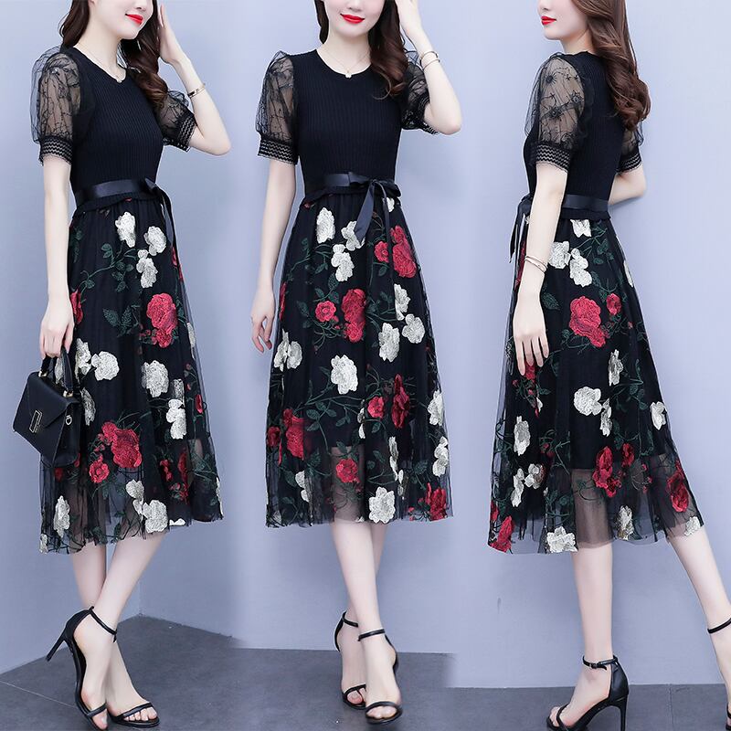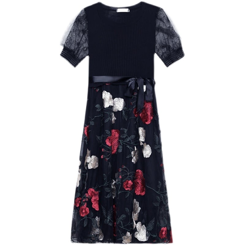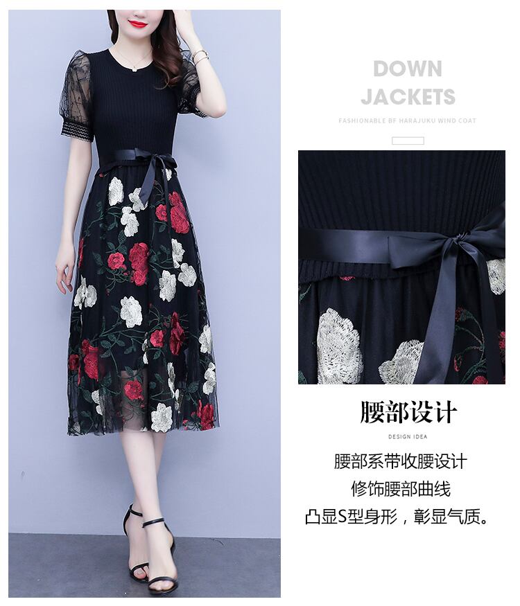 ウェストブラックドレス サマーレース 大きめサイズ 夏物 ステッチ muto43760698918