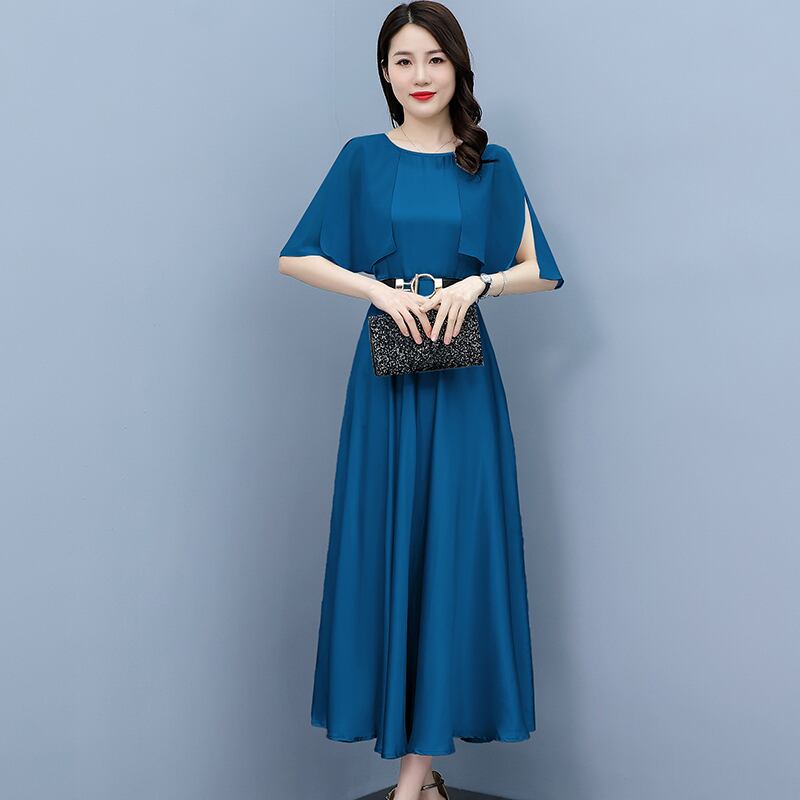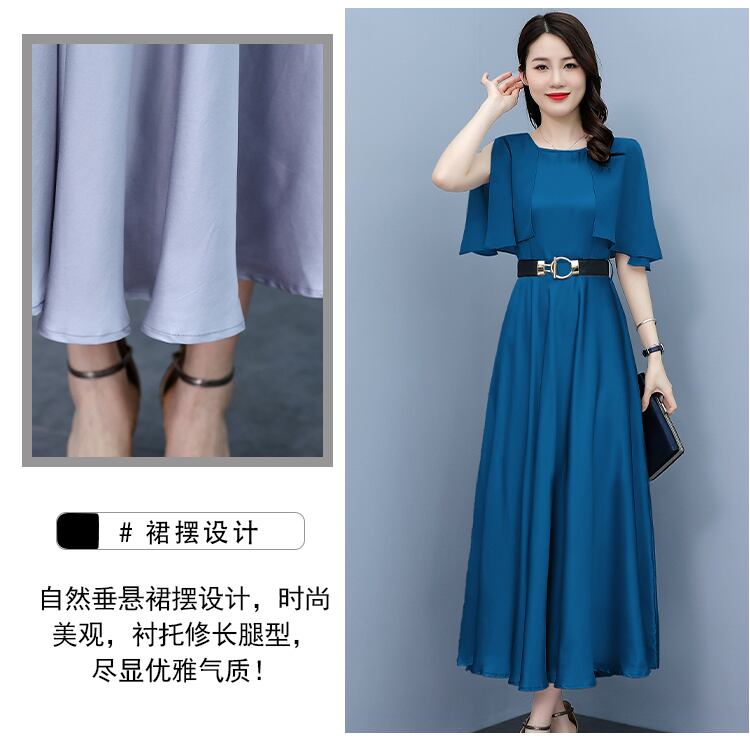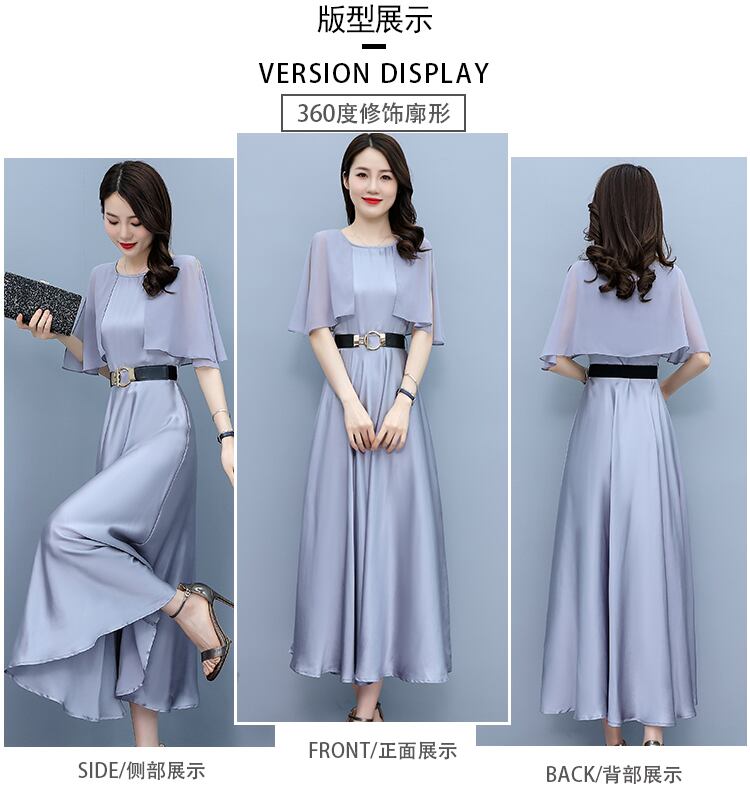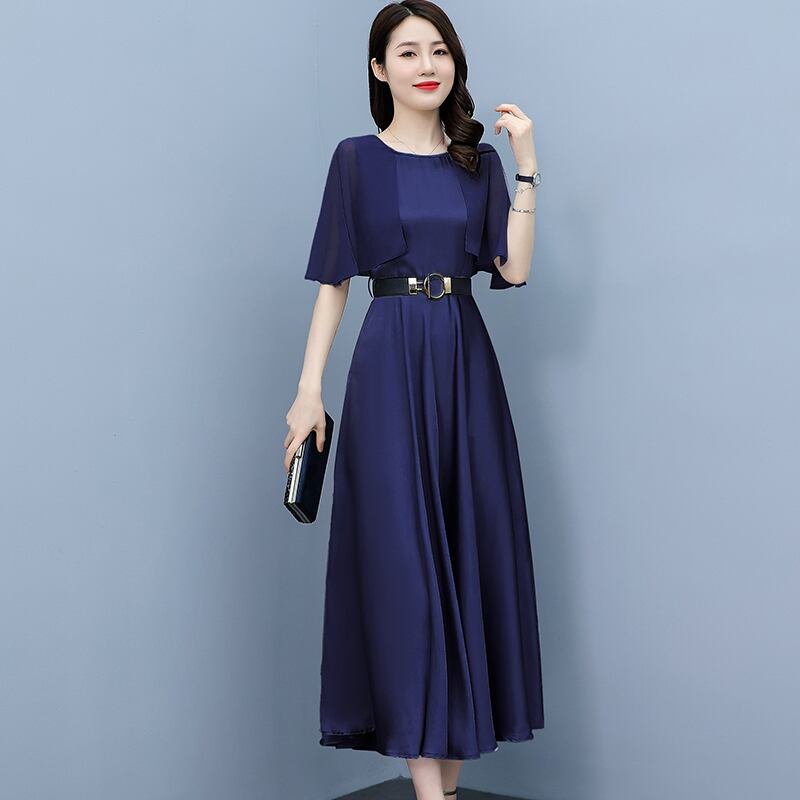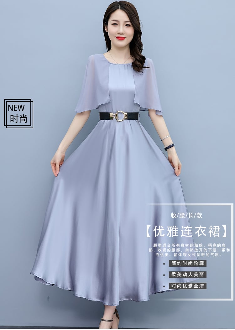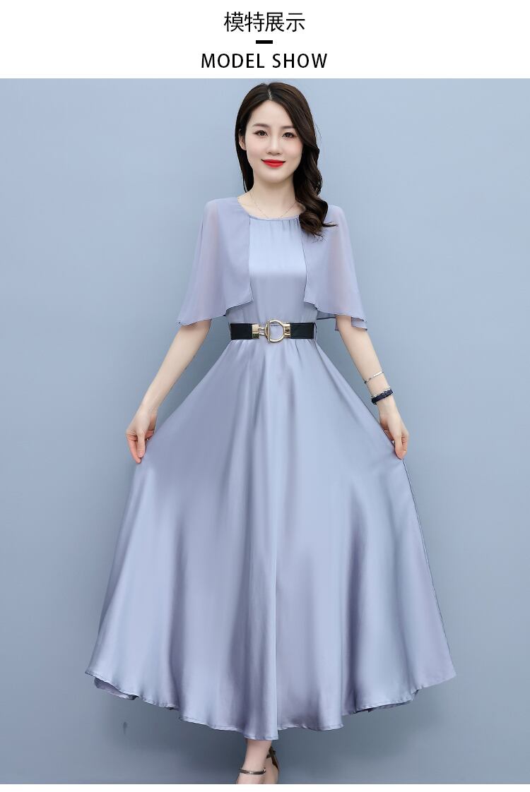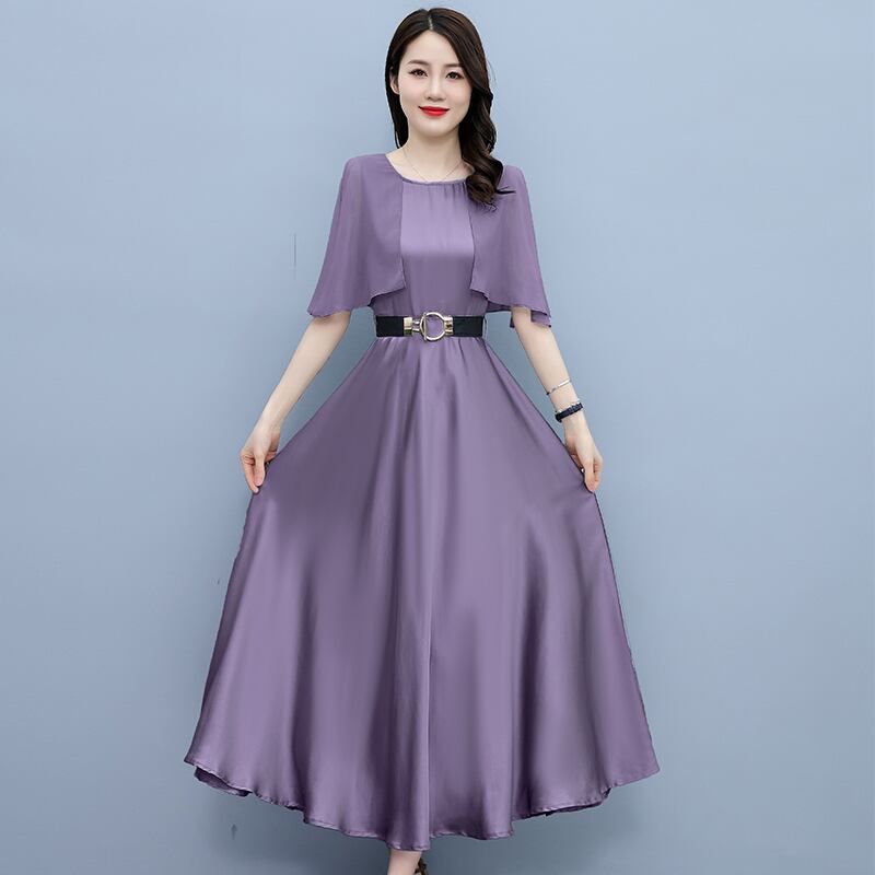 サテンドレス サマースリムラウンドネックロングスカート 大きめサイズ 夏物 ビーチ Oネック muto10783011258