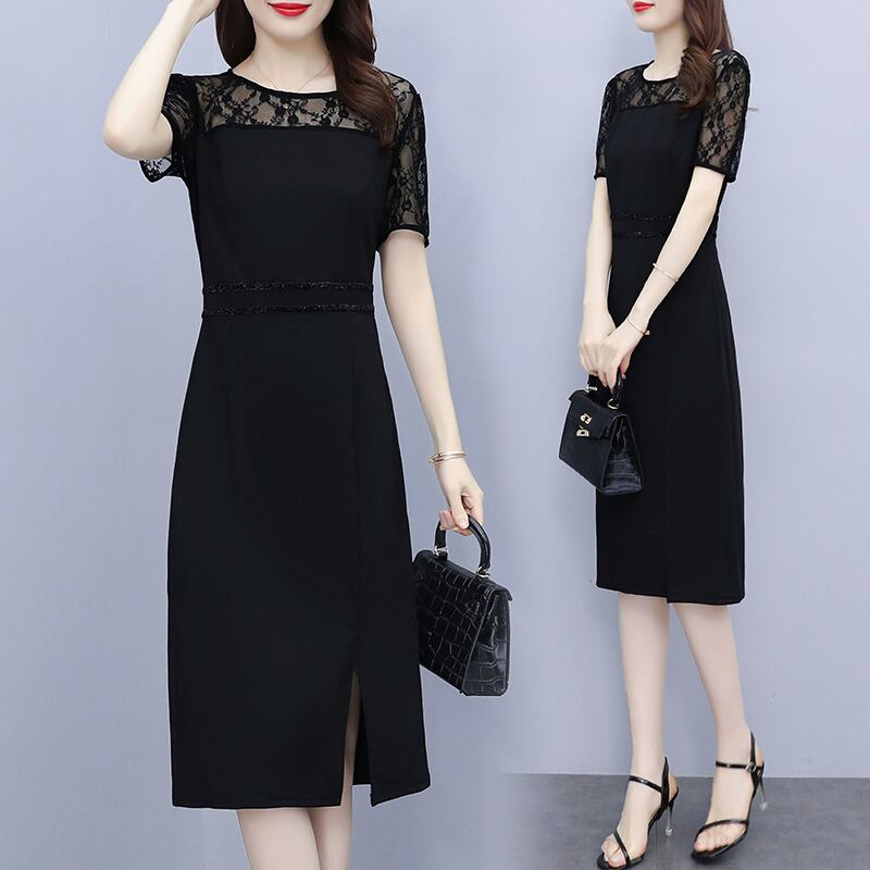 シフォンドレス サマーブラックレーススカート 大きめサイズ 夏物 muto20738509804