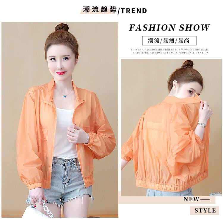 薄手ショートスタンドカラーカラールーズカジュアルサマースリーブコート 大きめサイズ 夏物 muto20485037985