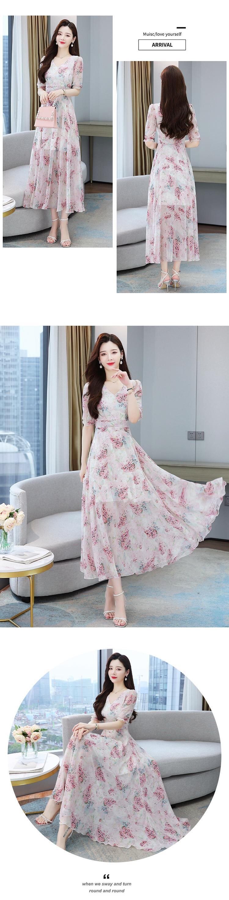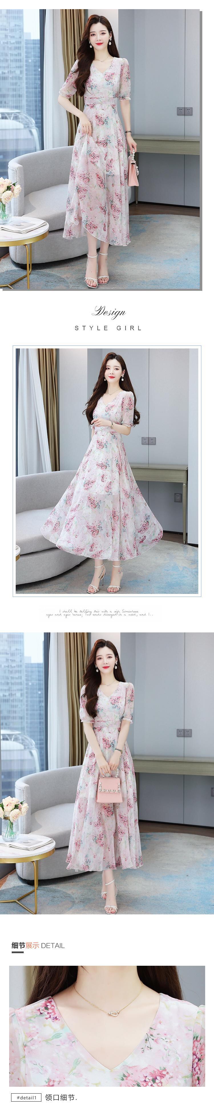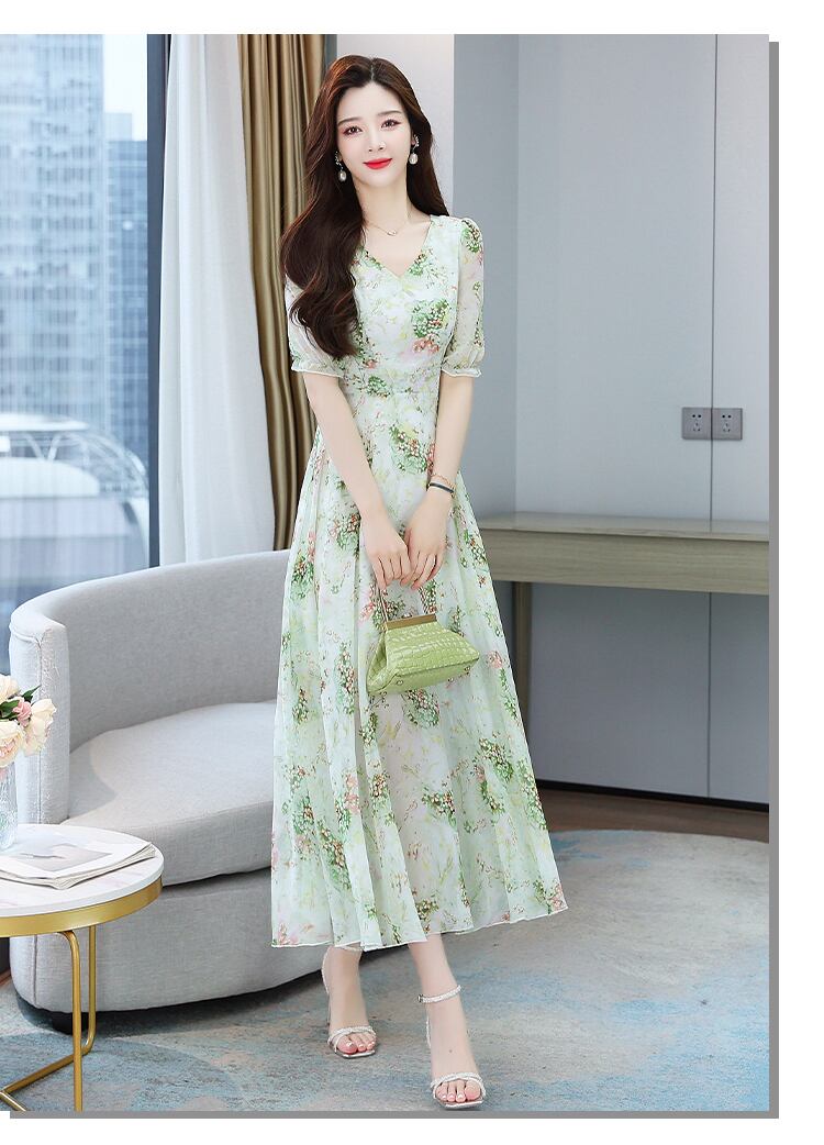 シフォンフローラルVネックドレス サマーレースロングスカート 大きめサイズ 夏物 花柄 muto59027187547