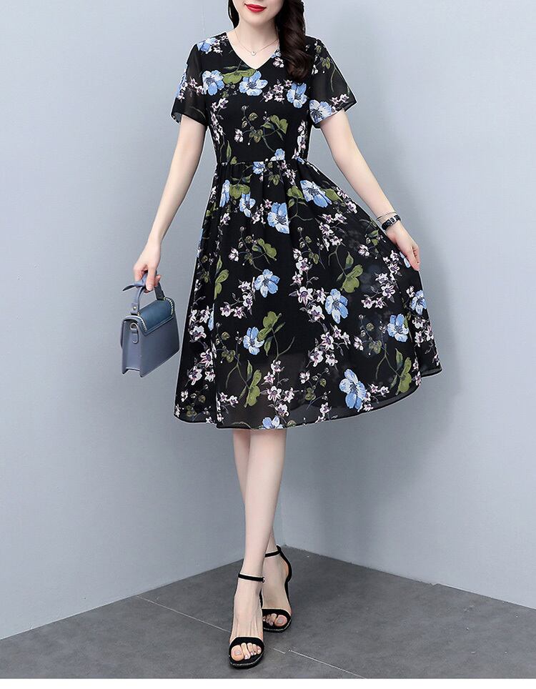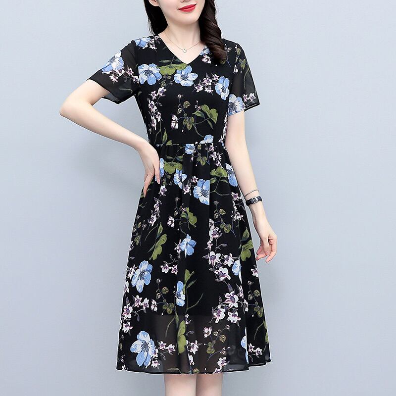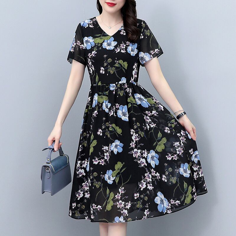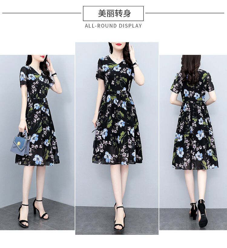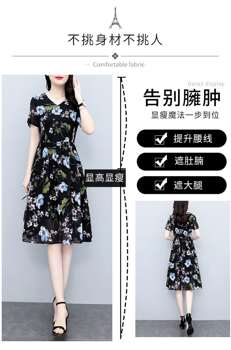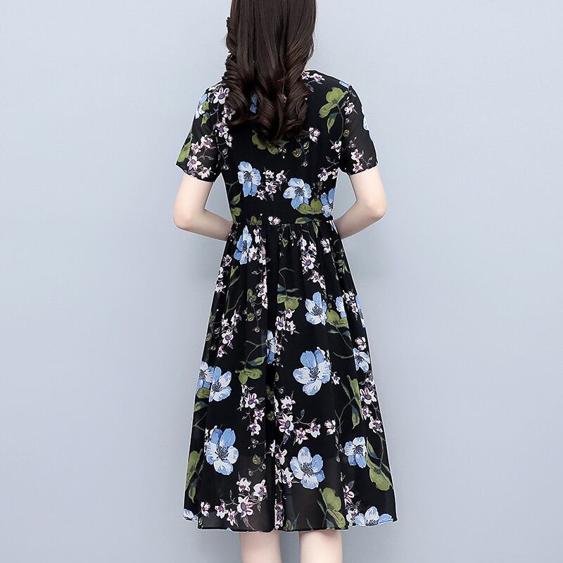 シフォンプリントスカート サマースタイルスリムドレス 大きめサイズ 夏物 muto62634992715
