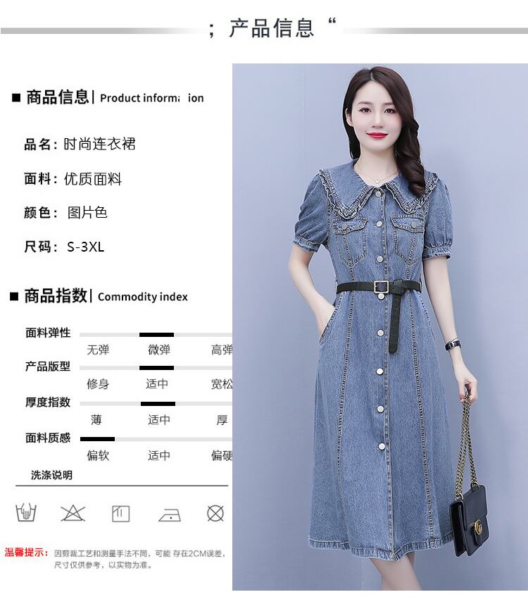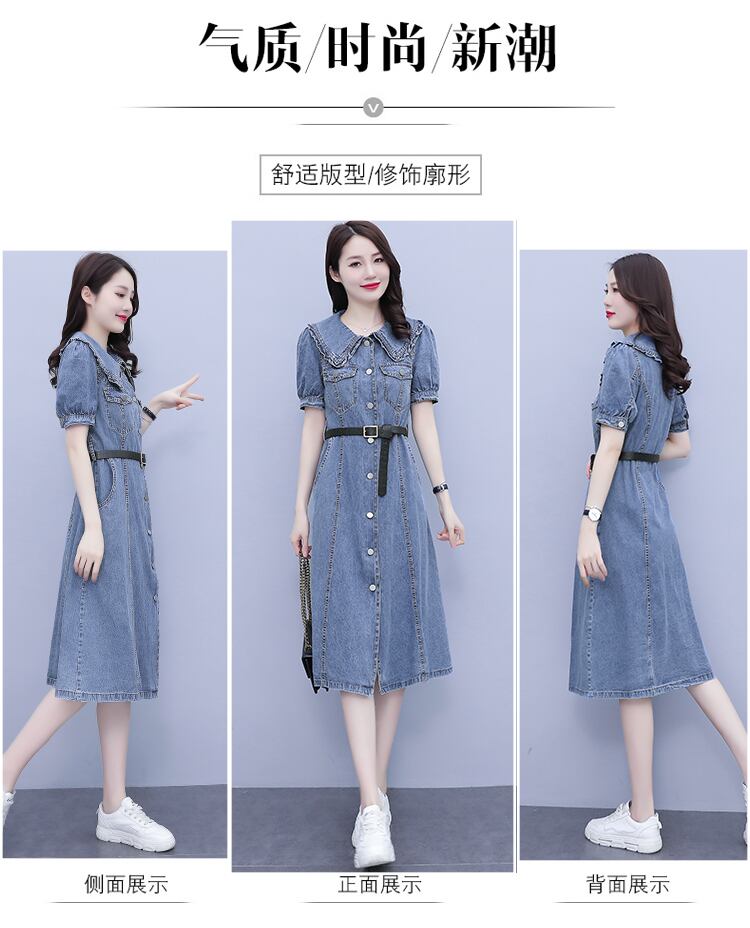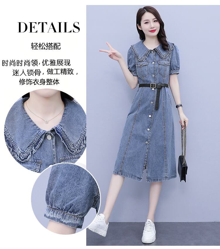 サマー薄手ドレス スタンダードカラーウェストスリム レトロ 大きめサイズ 夏物 muto54119062733
