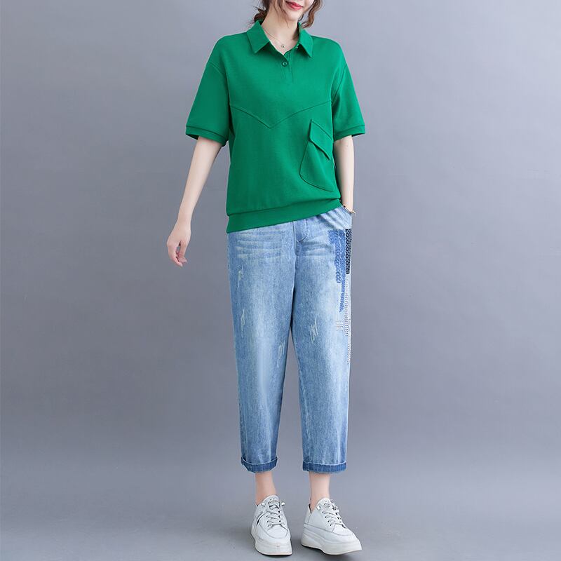 トップス ルーズジーンズ サマーカジュアルセーター セット 大きめサイズ 夏物 muto90290342407