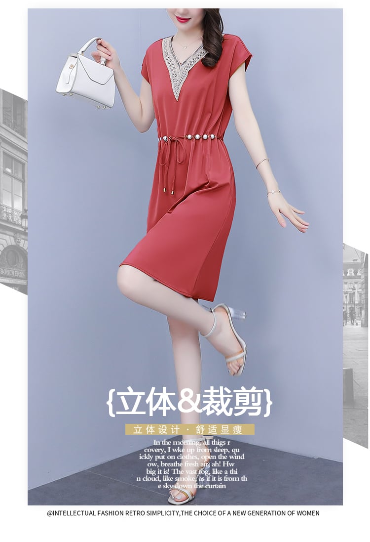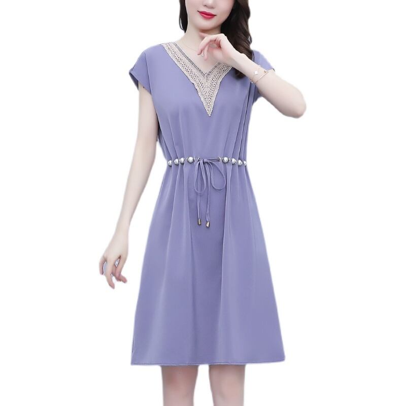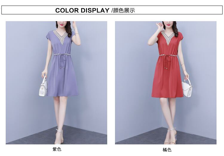 Vネックドレス サマースリムウェスト薄手Aラインスカート 大きめサイズ 夏物 muto26382318512