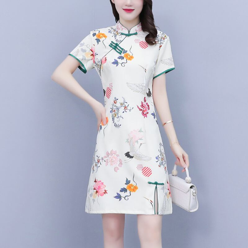 サマースリムスタンダードショートドレス レトロ 大きめサイズ 夏物 muto22446990230