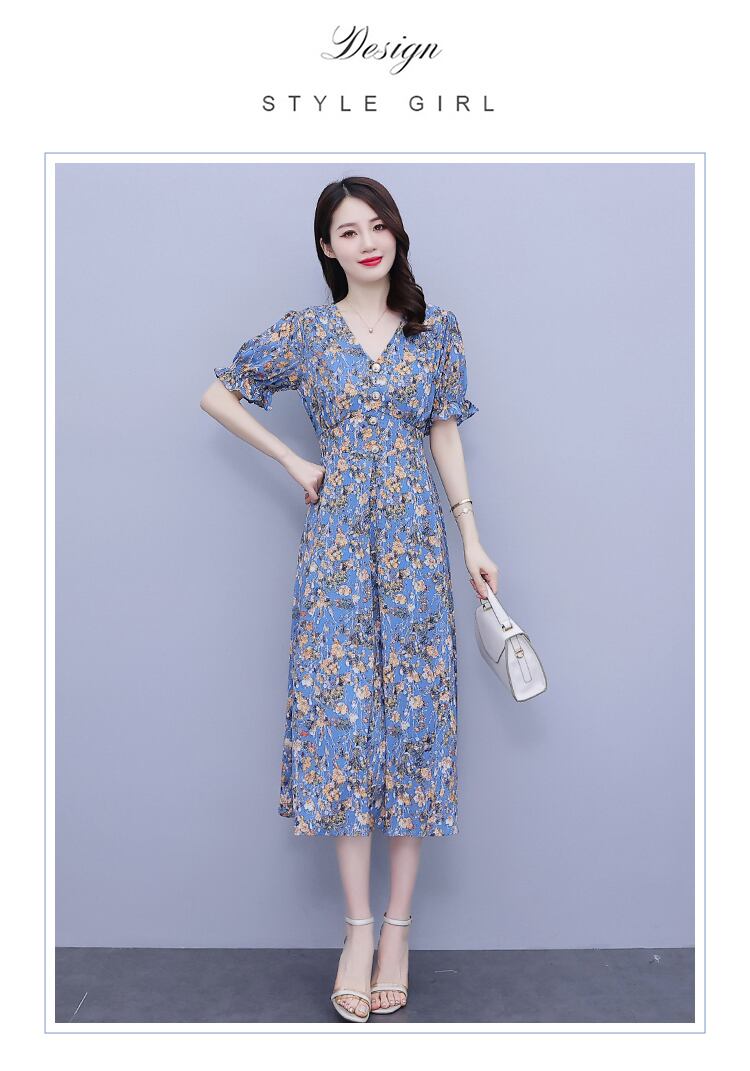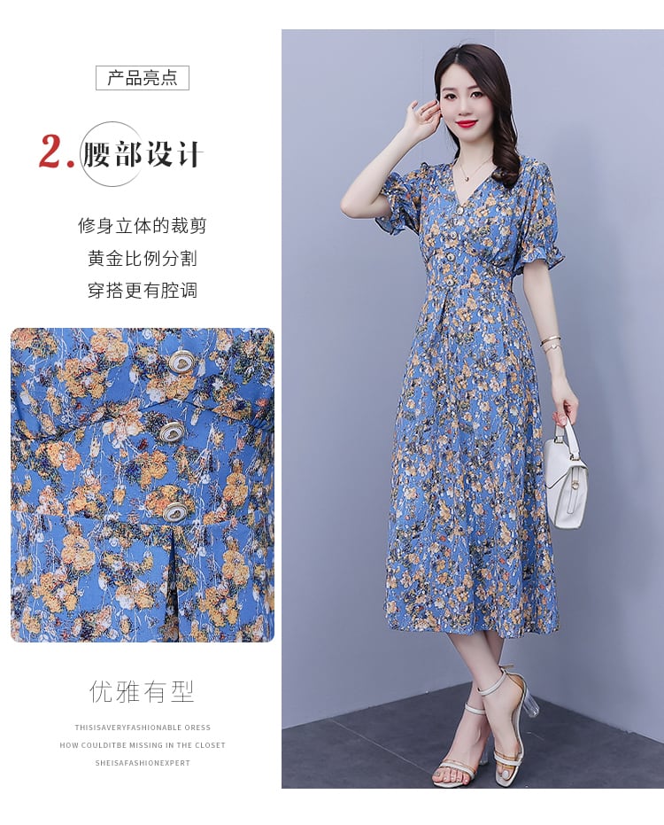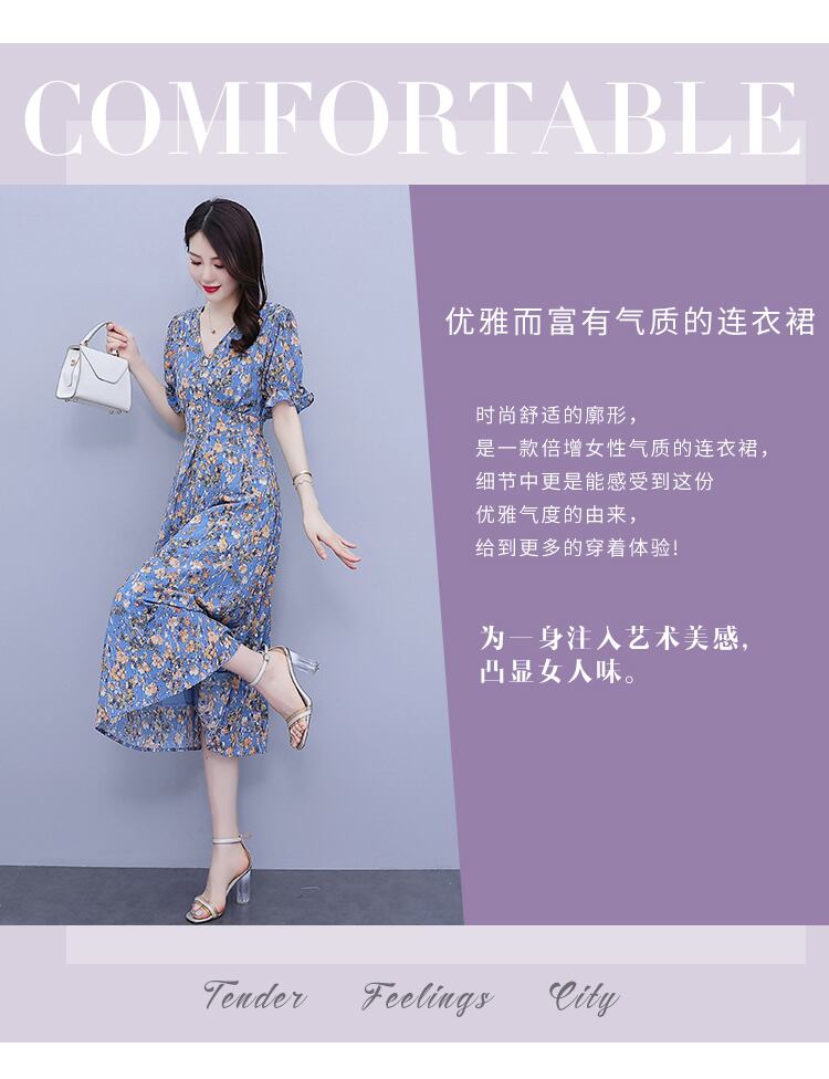 フローラルシフォンVネックドレス サマーウェスト薄手ハイウェストロングスカート 大きめサイズ 夏物 花柄 muto77120081482