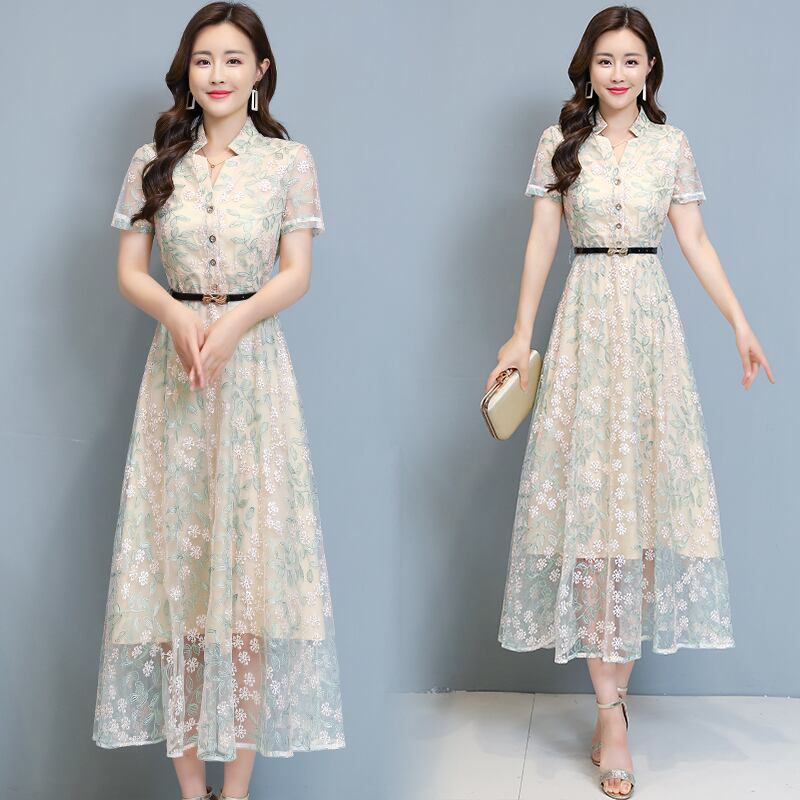 レースドレス サマースリムスカート レッド 刺繍 大きめサイズ 夏物 muto78804417909