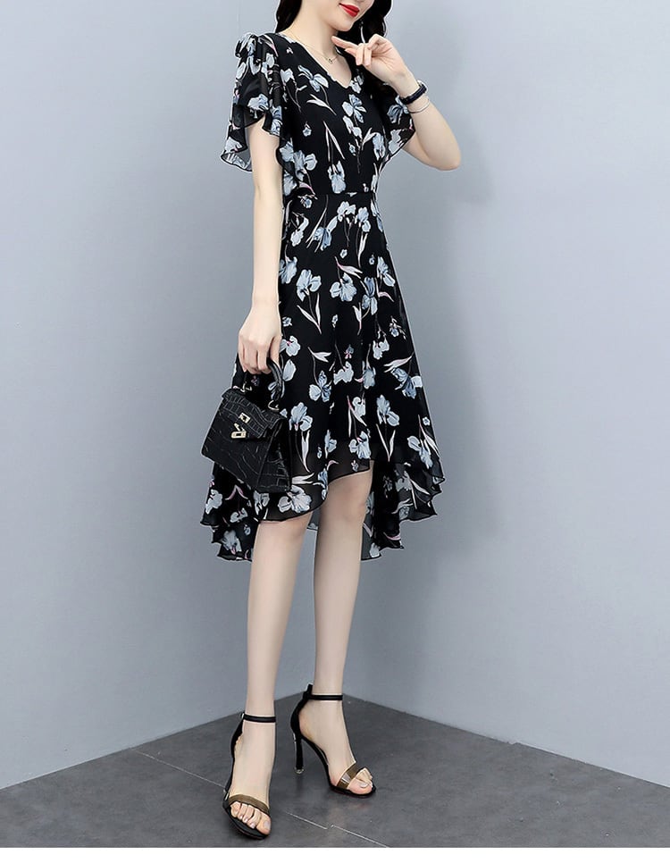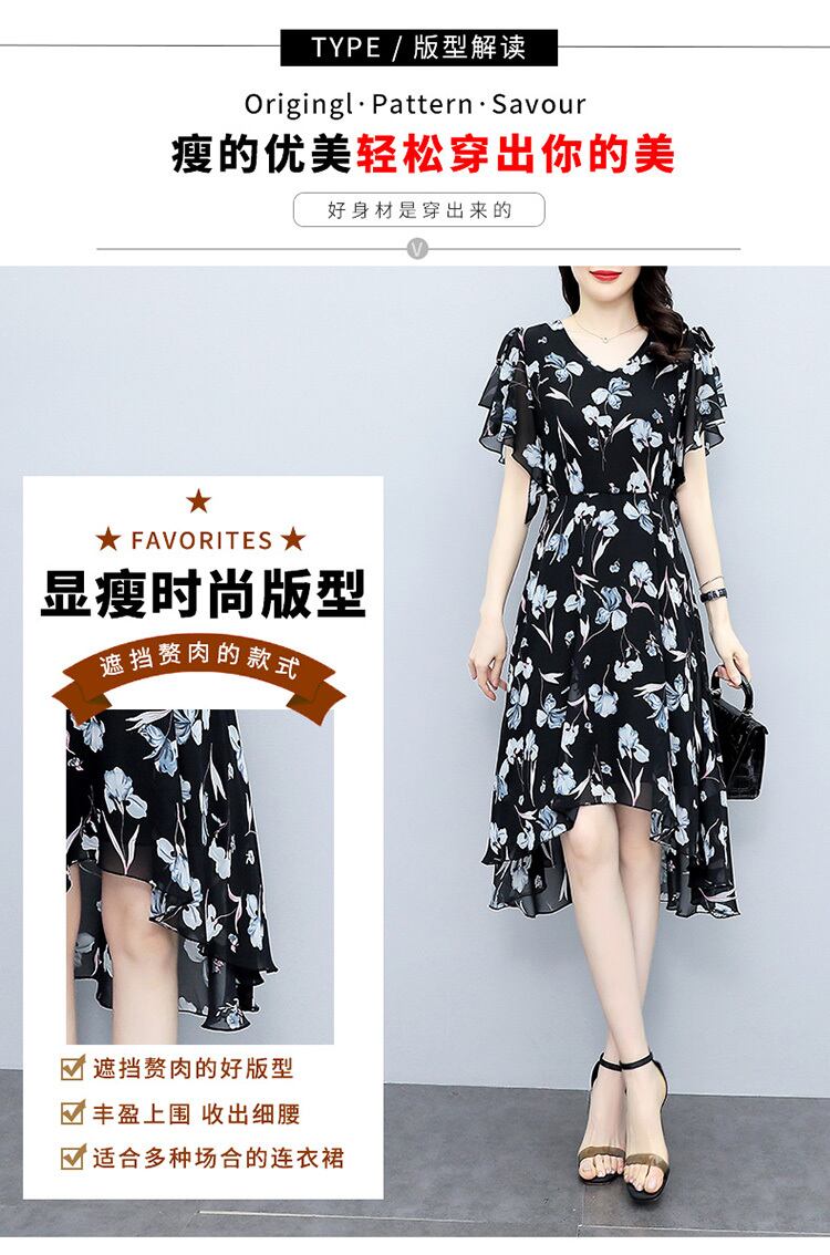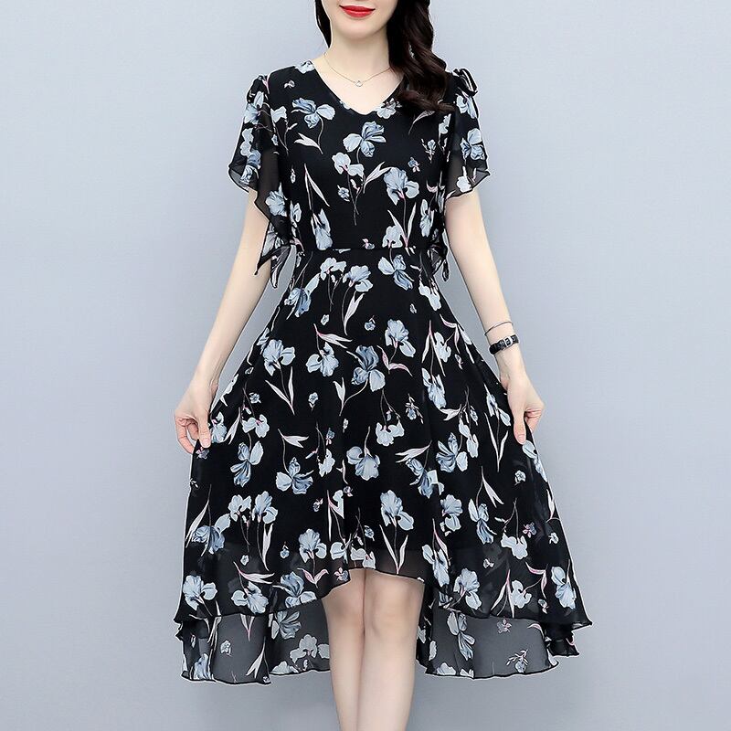 フローラルシフォンドレス サマーウェスト薄手スカート 大きめサイズ 夏物 花柄 muto25985291074