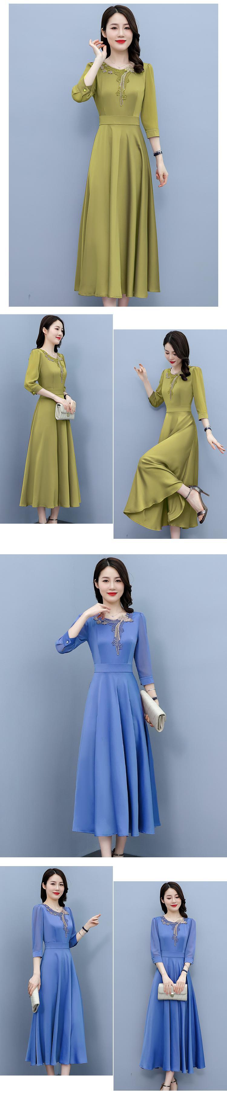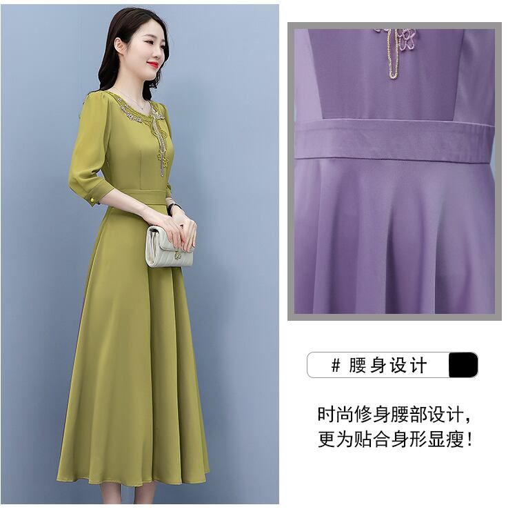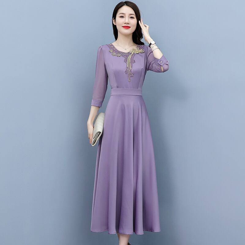 サテンドレス 薄手サマースタイルミディスカート レッド 刺繍 大きめサイズ 夏物 muto87346320318