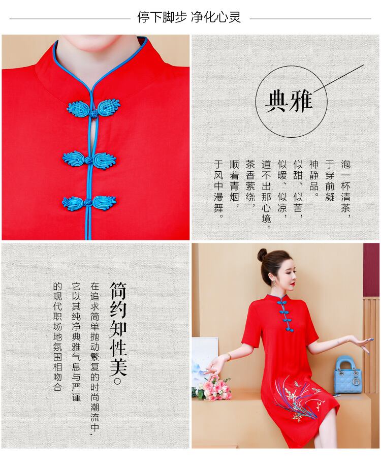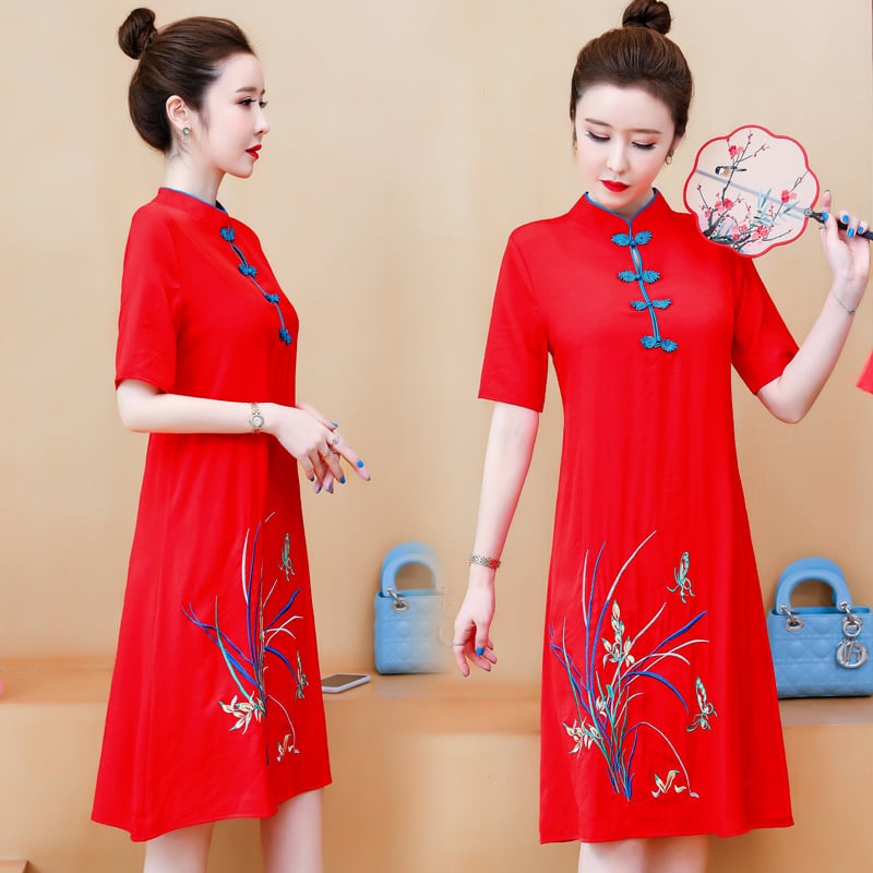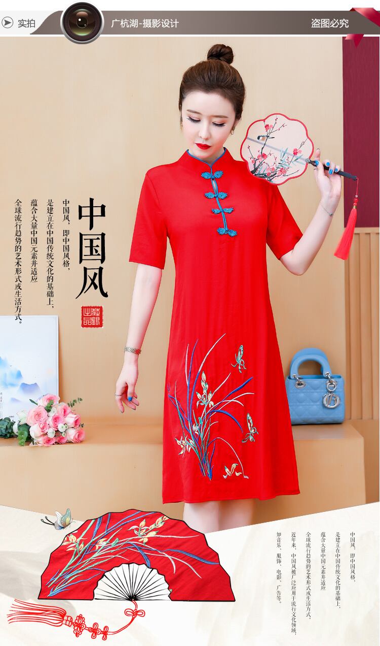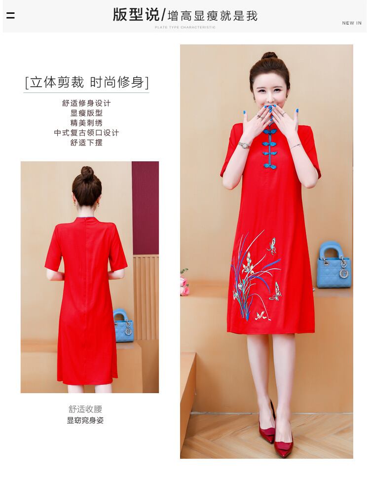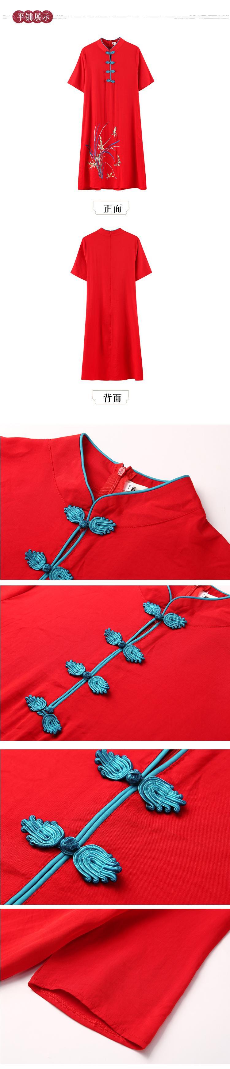 スタンダードエスニックスタイルドレス サマー レッド レトロ 刺繍 大きめサイズ 夏物 muto84864375898