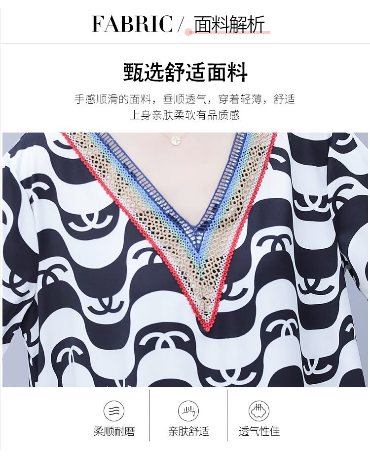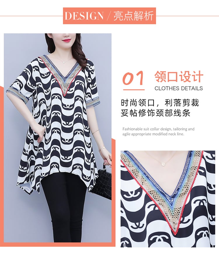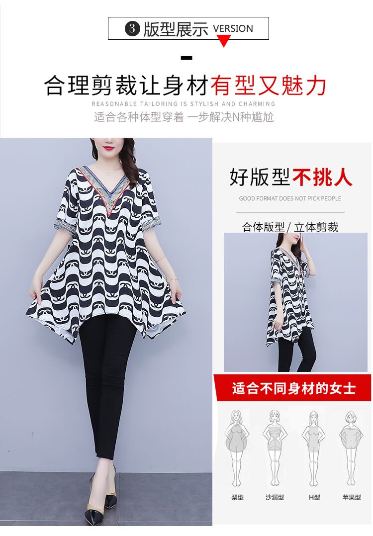 サマートップス 薄手ルーズシフォンVネックTシャツ 大きめサイズ 夏物 muto30790778875
