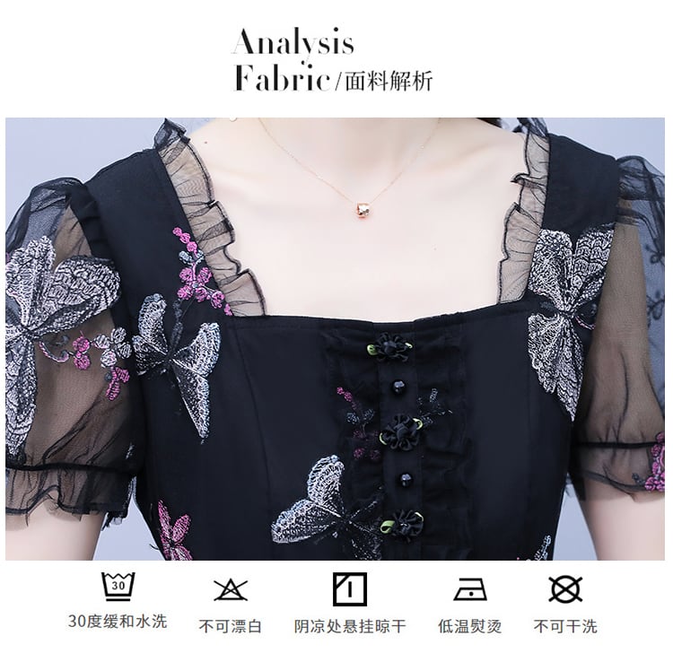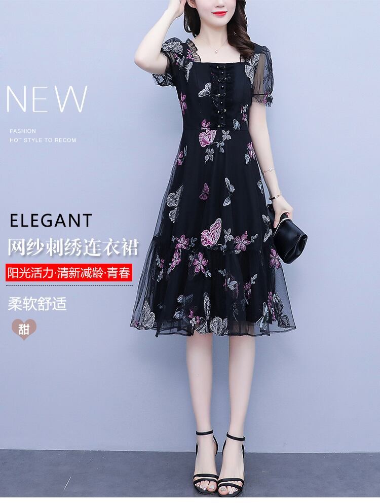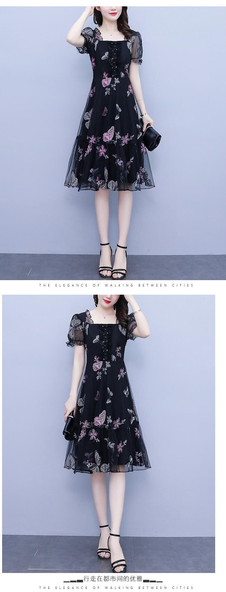 シフォンドレス サマースタイルButterflyデザイン フローラルメッシュスカート 大きめサイズ 夏物 花柄 muto99451946086