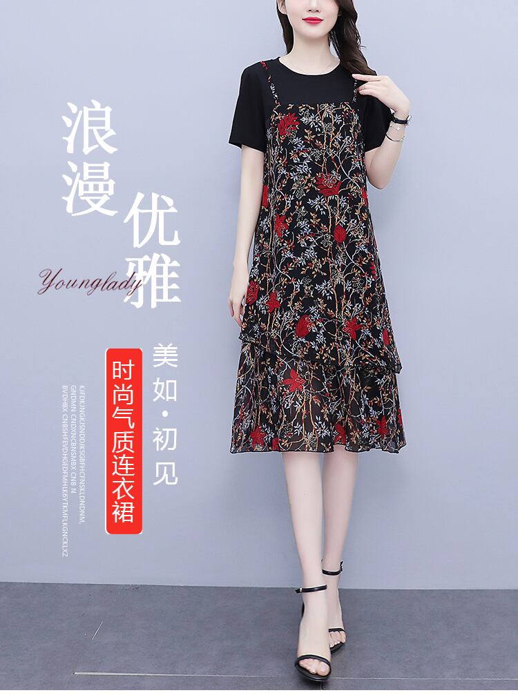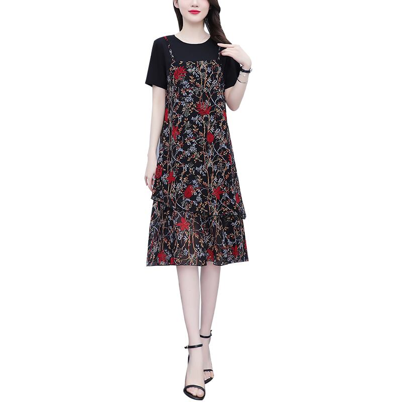 プリントスカート サマー薄手ロングドレス 大きめサイズ 夏物 muto8537946964